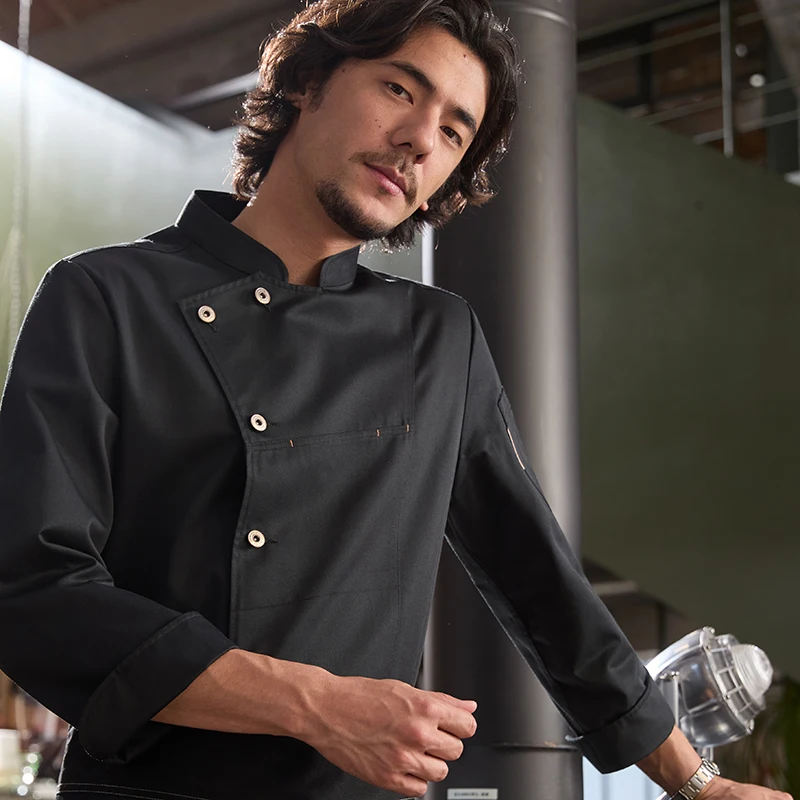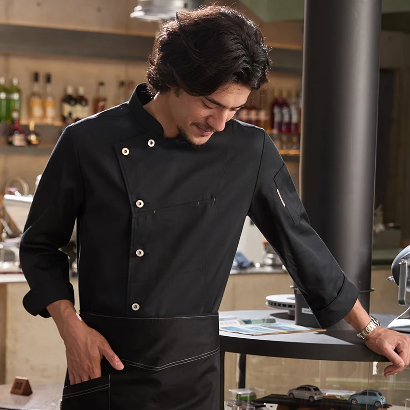 Tesimei Winter Long Sleeve Chef Set for Men & Women Restaurant & Bar Uniforms for Catering Baking Hotel Kitchen Use Woven Bakers