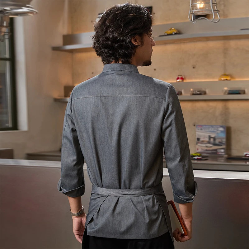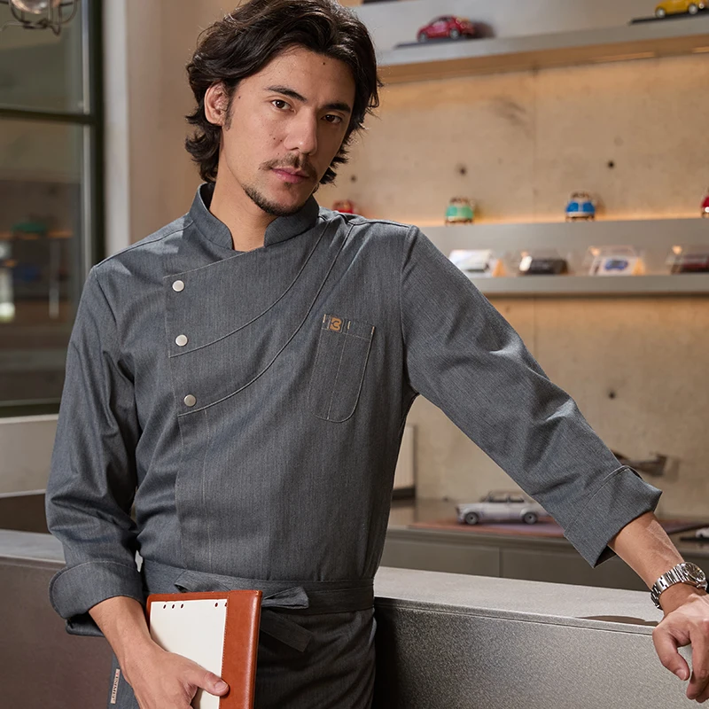 ChuYibang High-End Black Long Sleeve Kitchen Suit for Men Baking Top Workwear for Western Restaurant & Bar for Cooking