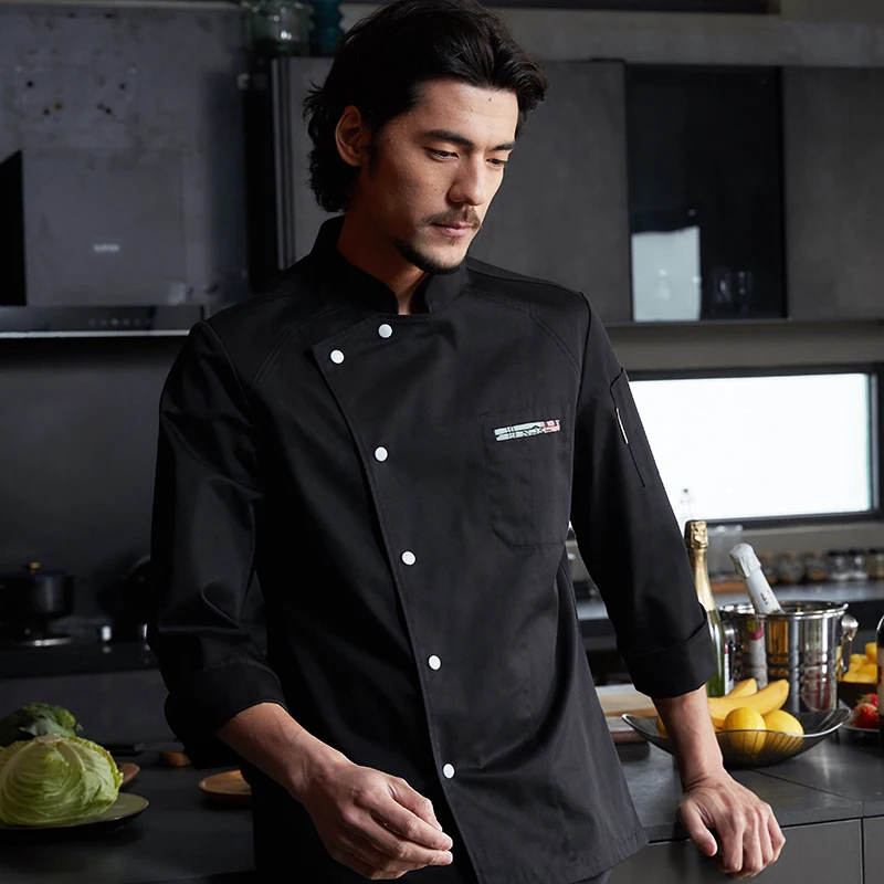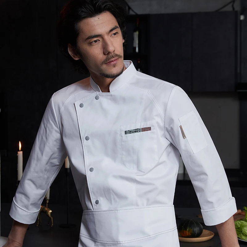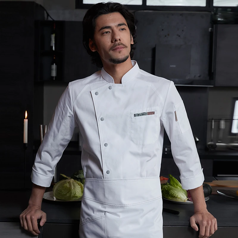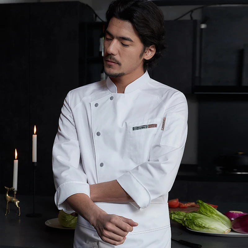 Tesimei Men's High-End Autumn Kitchen Clothes New Long Sleeve Chef Pants in Canvas for Hotel Restaurant Baking Kitchen Use