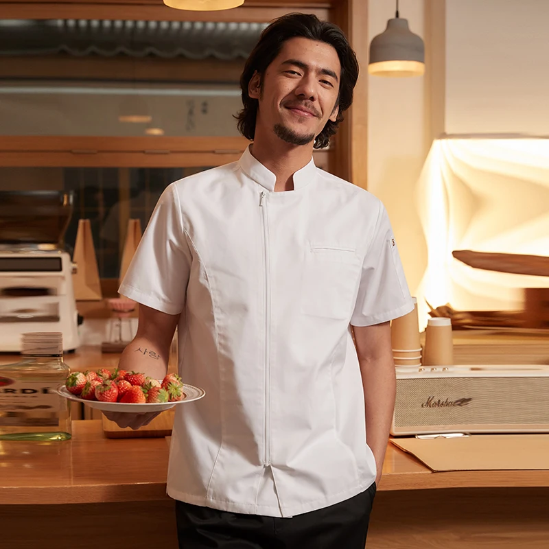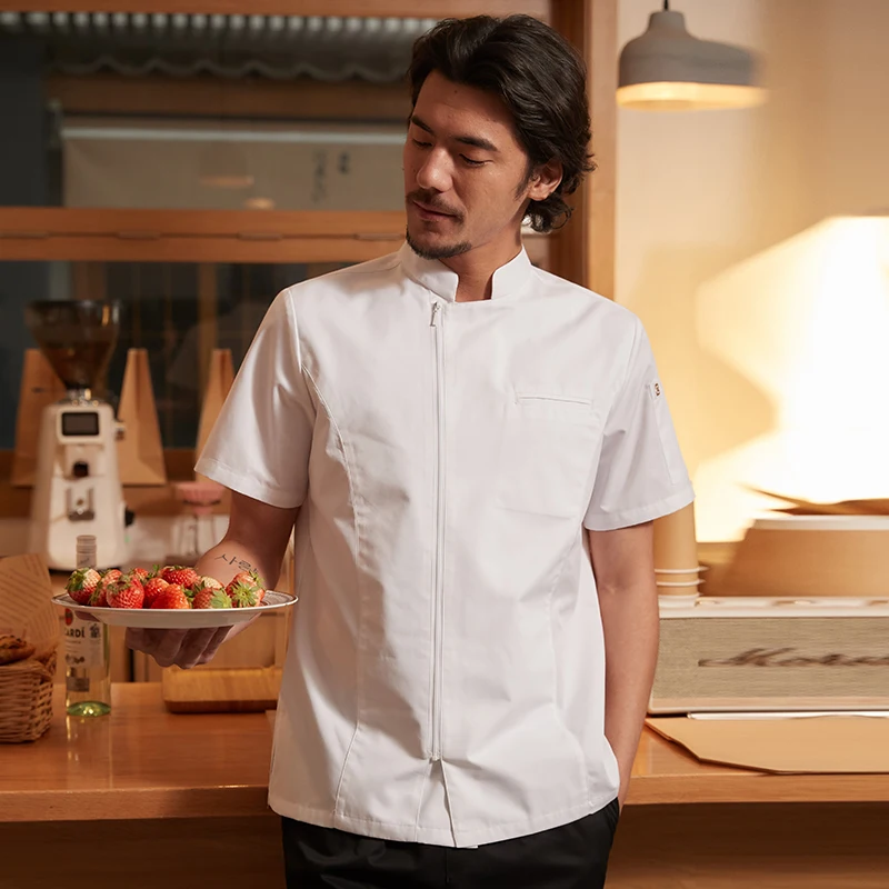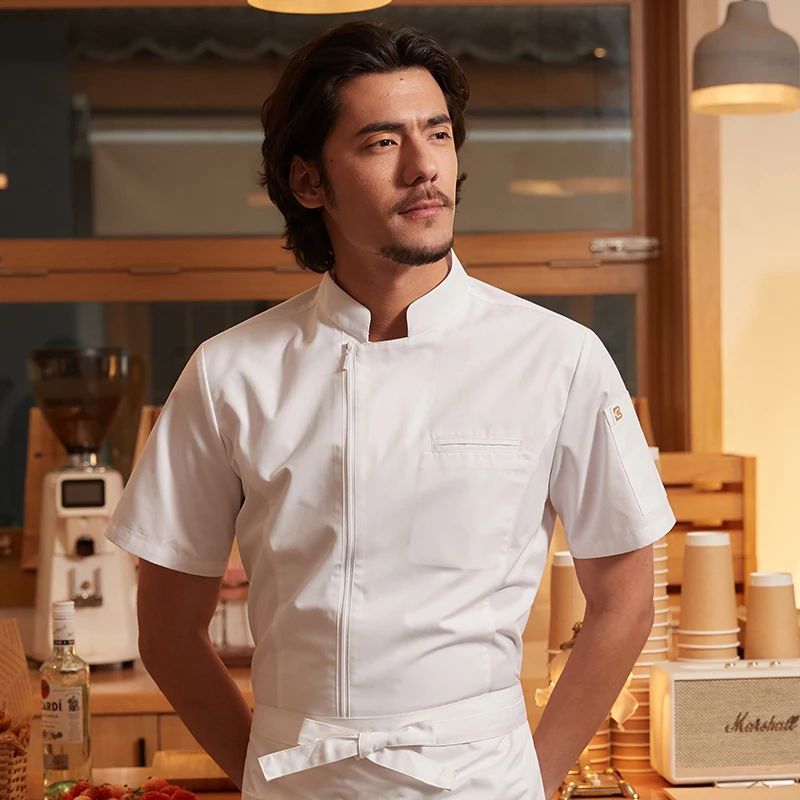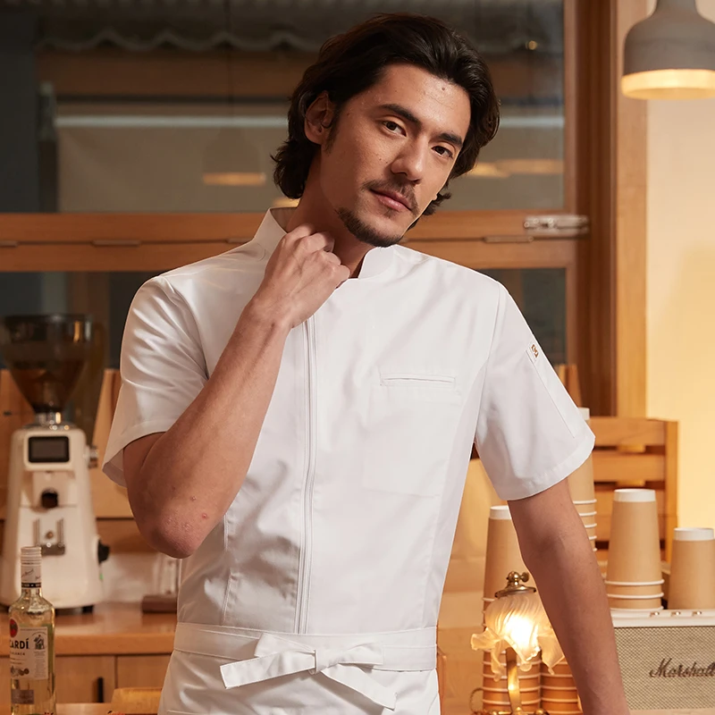 ChuYibang Kitchen Chef Work Clothes Upscale Summer New Style Long-Sleeved Canvas Zipper Western Restaurant Uniforms