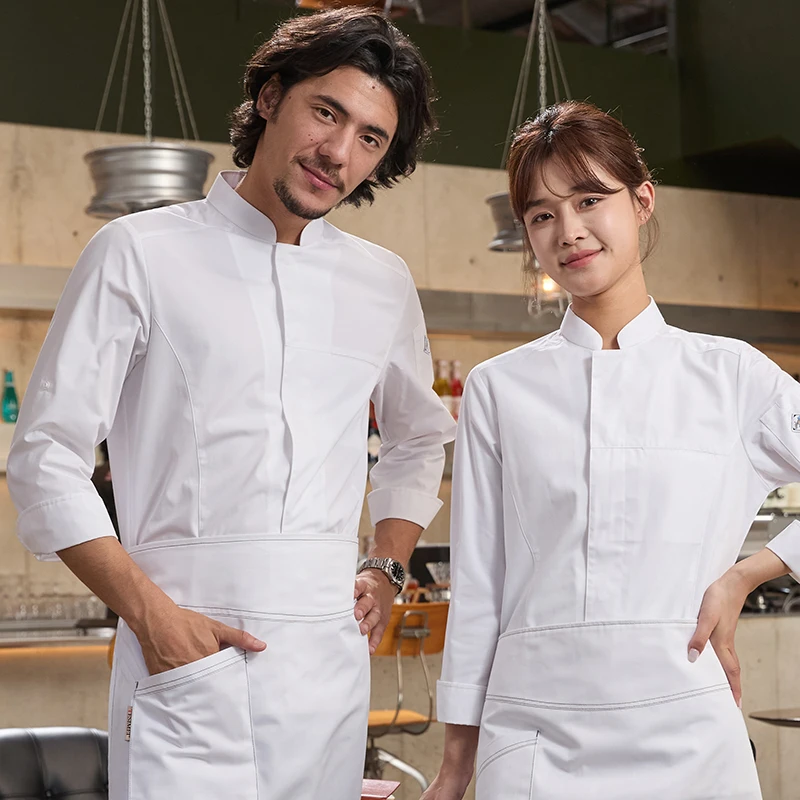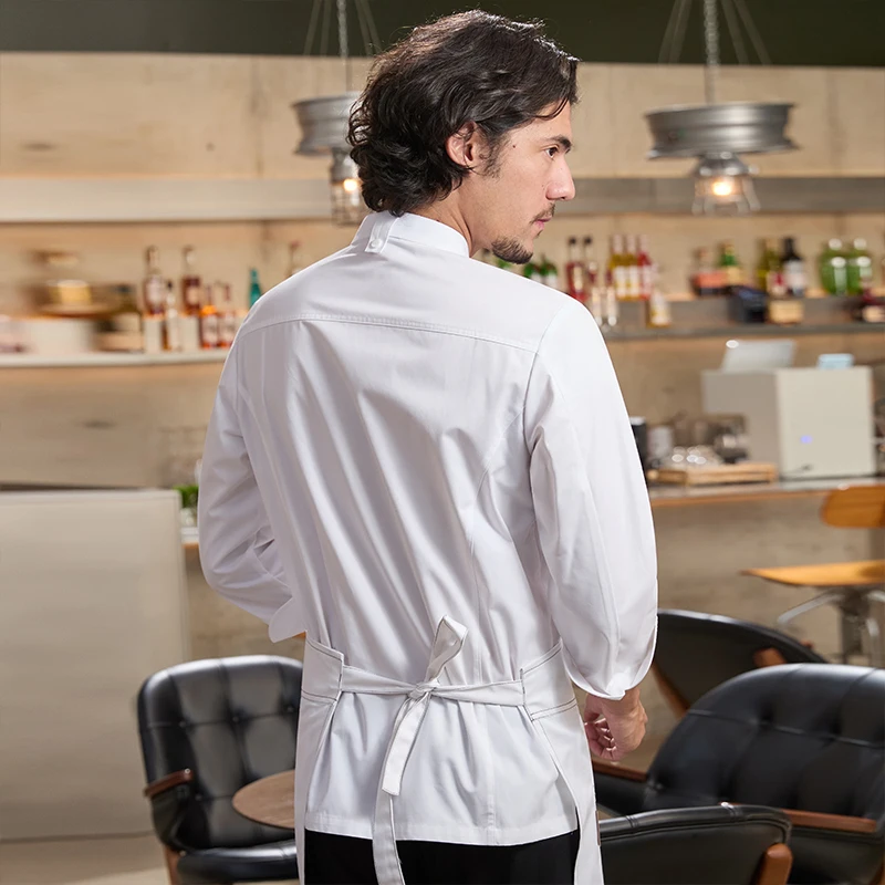 Tesimei High-End Men's Summer Chef Work Clothes New Style Long Sleeve Western Kitchen Uniform Restaurant Bar White