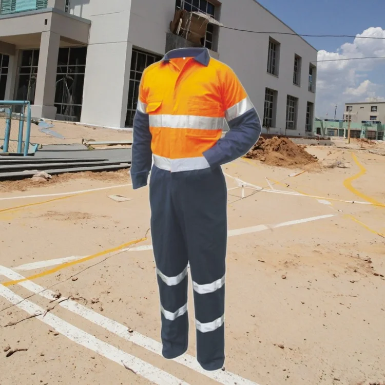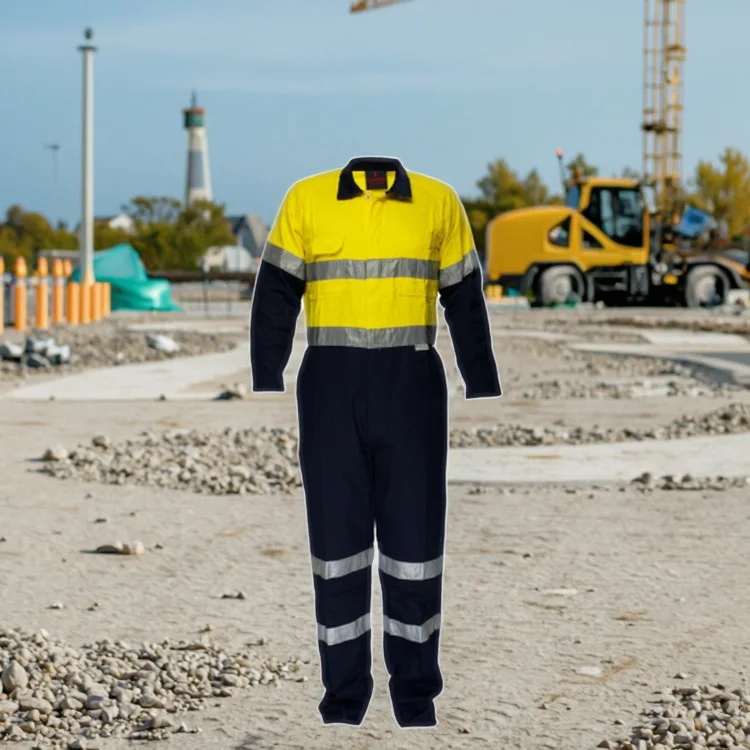 Hot Sale 100% Cotton Yellow / Navy Two Tone One Piece Reflective Safety High Visibility Construction Hi Vis Work Wear