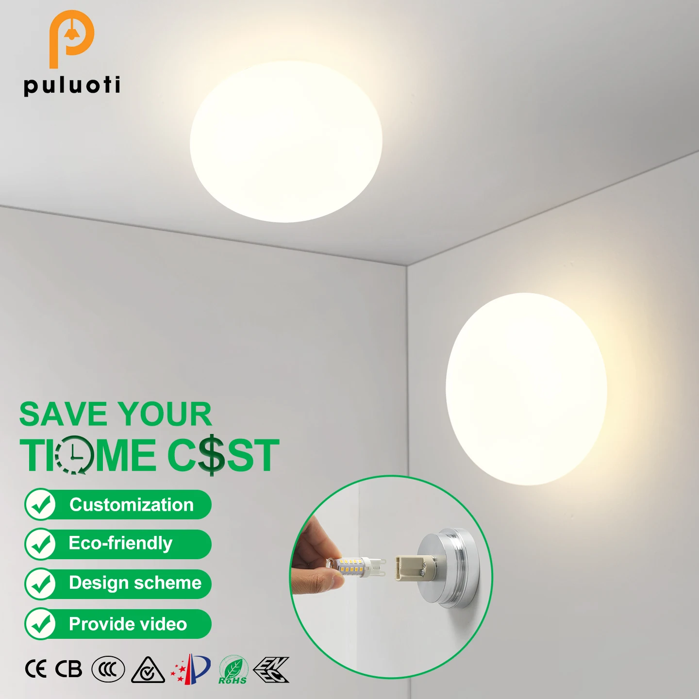 PULUOTI Modern Nordic G9 3000K LED Wall Light Round Silver Bracket Indoor Glass Fixture for Hotel Porch Living Room Hallway