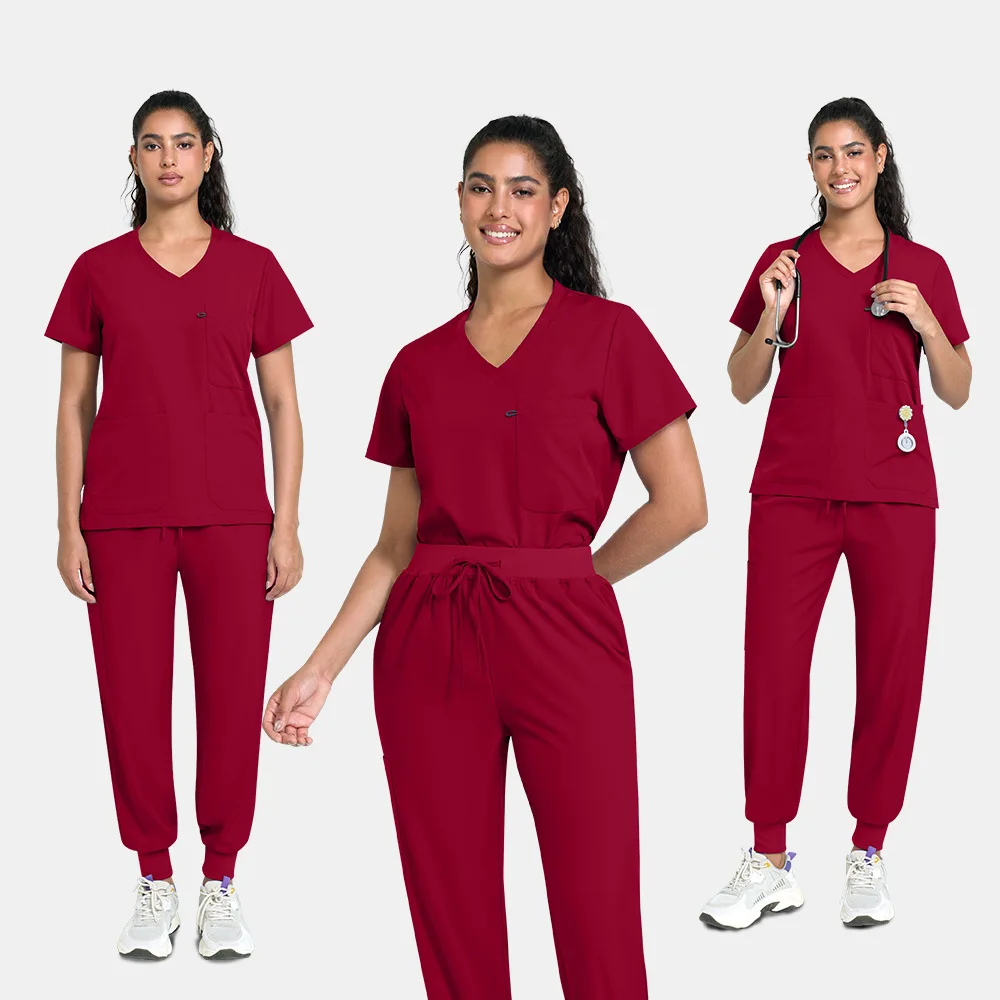 Fashion Clinic Scrub Sets Short Sleeve Uniform Scrubs Suit in Woven Spandex Fabric High Quality Unisex Hospital Workwear