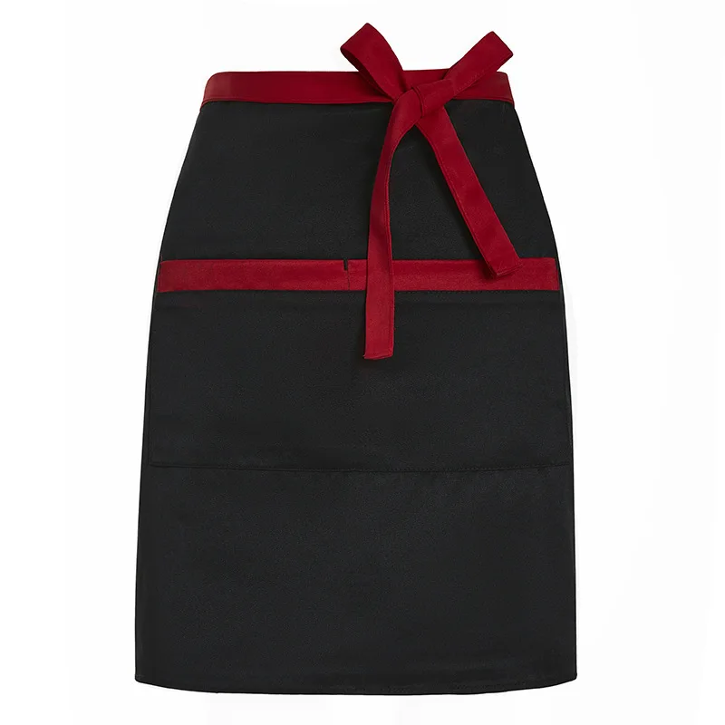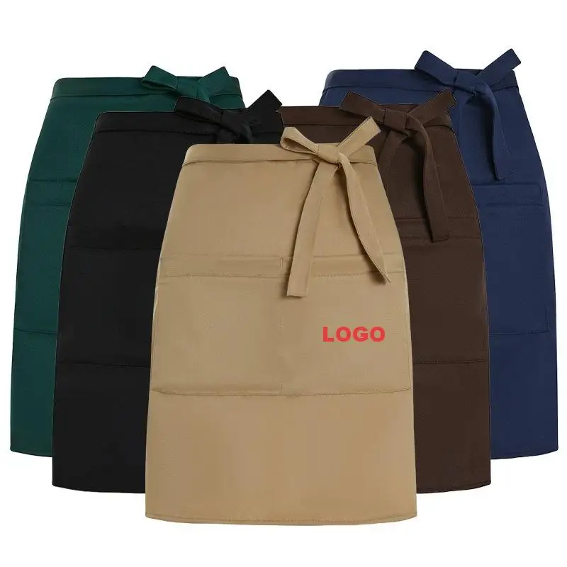 Personalized Kitchen Restaurant Waiter Half Apron Uniform Hotel Short Workwear Food Service Waist Apron With Pockets Custom Logo