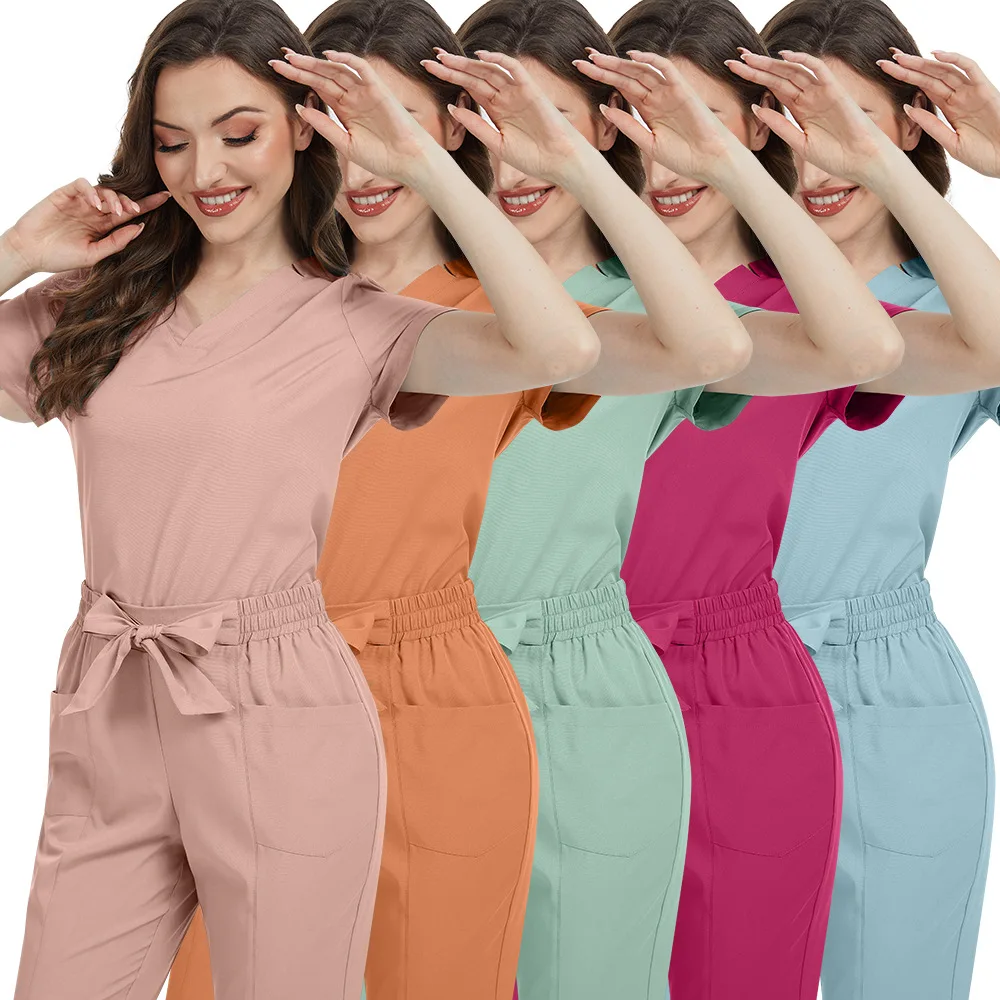 Hot Sale Anti Wrinkle Washable Soft Fabric Nurse Scrubs Hospital Uniform Medical Scrubs Women Jogger Scrubs Sets Pair