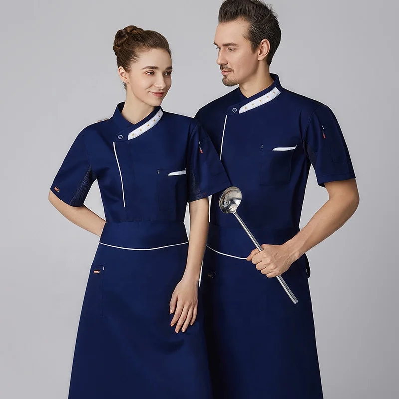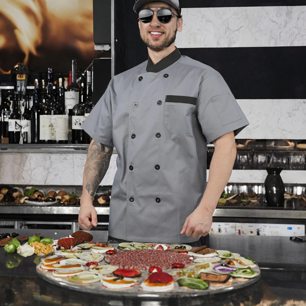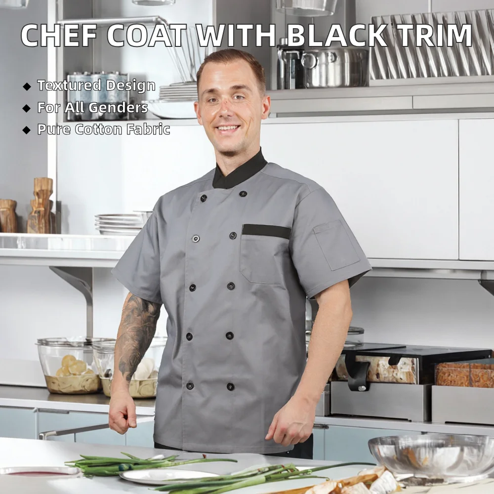 BSCI WRAP Custom 3/4 Sleeve White Black Trim Chef Coat Woven Fabric for Cooking Baking BBQ