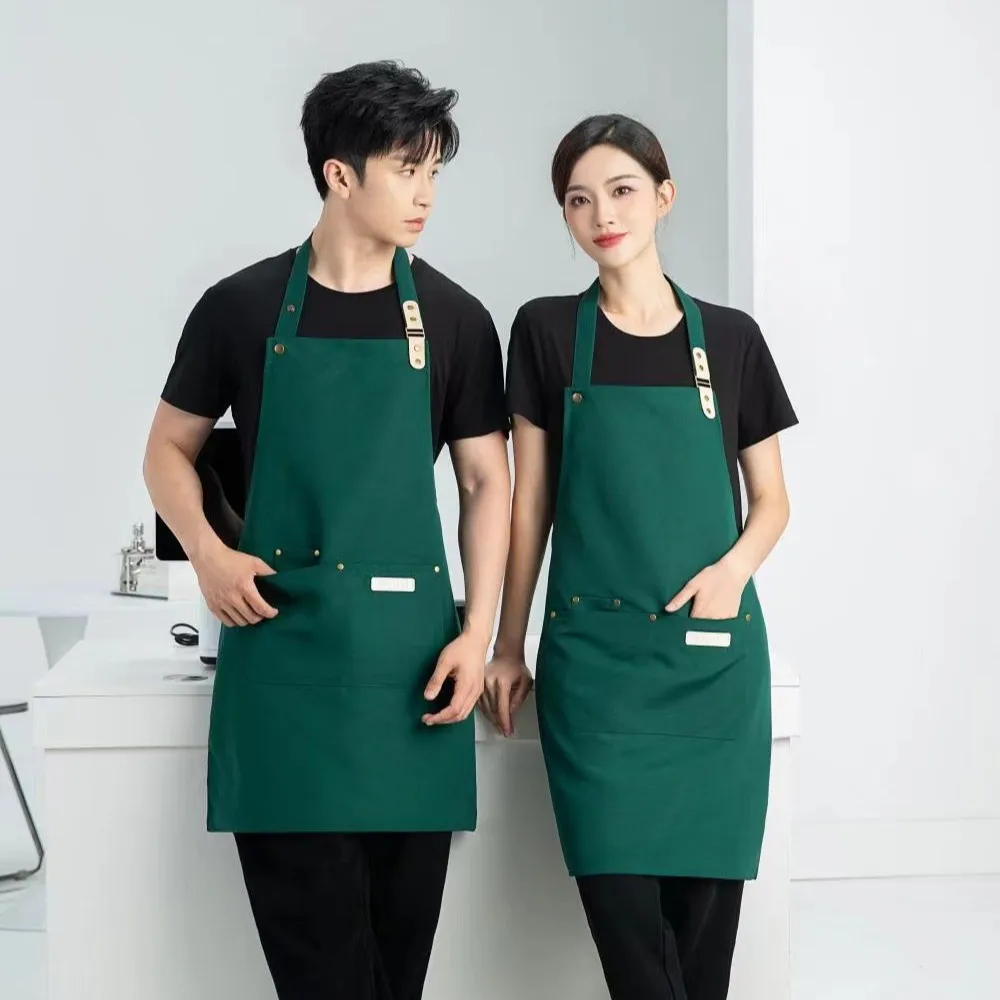 High Quality Customized Logo Metal Snap Buttons Khain Canvas Aprons Clean Dust Unisex In-Stock Restaurant Bar Waiter Service