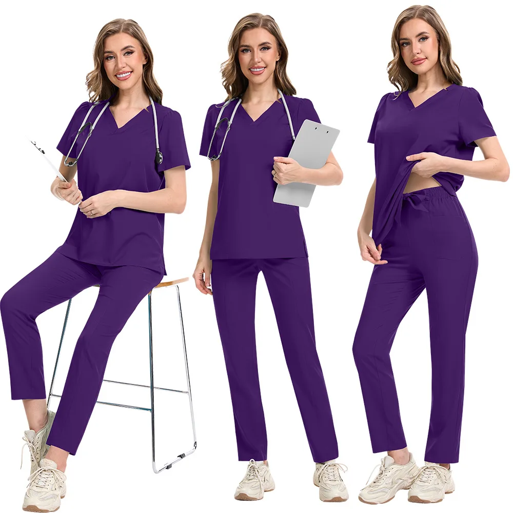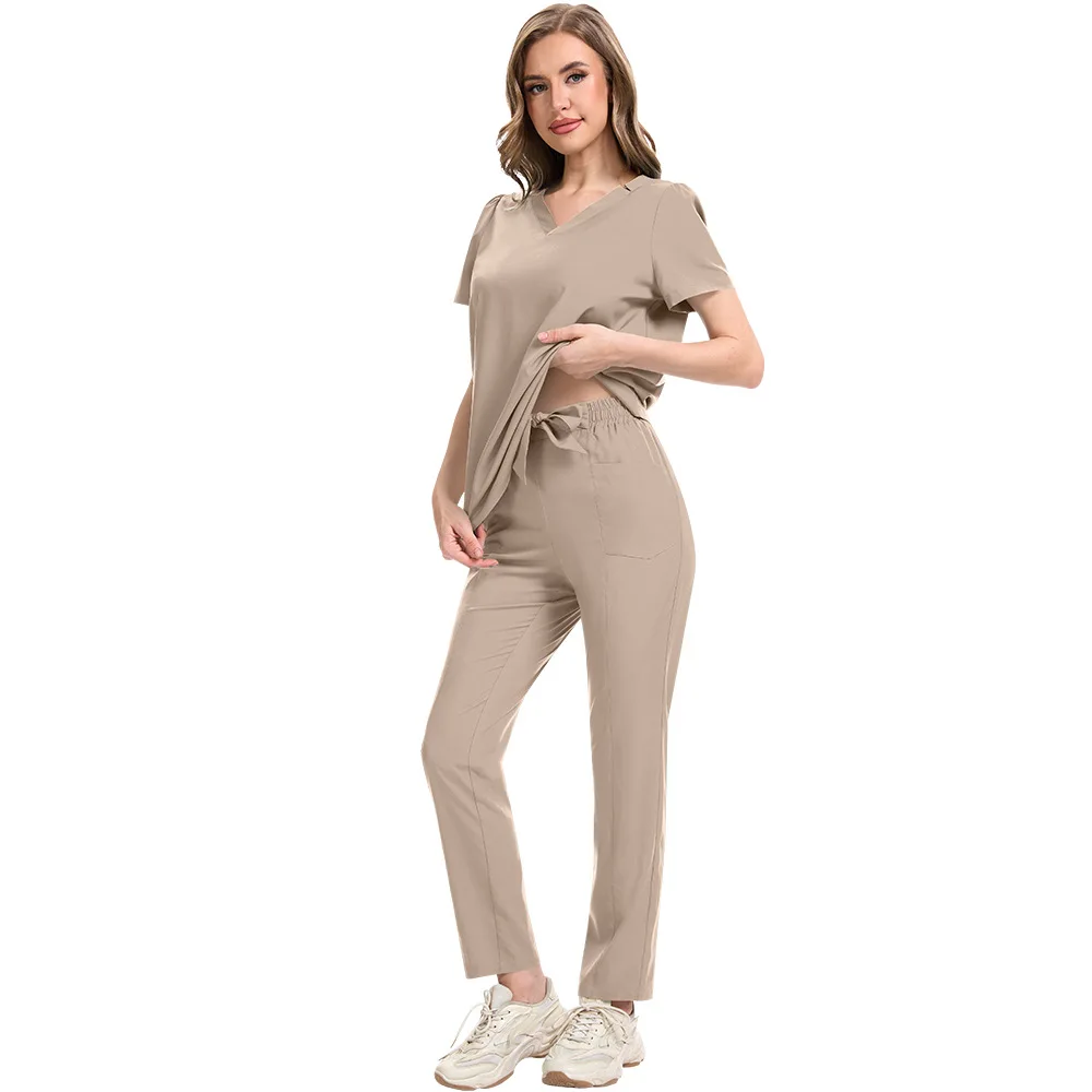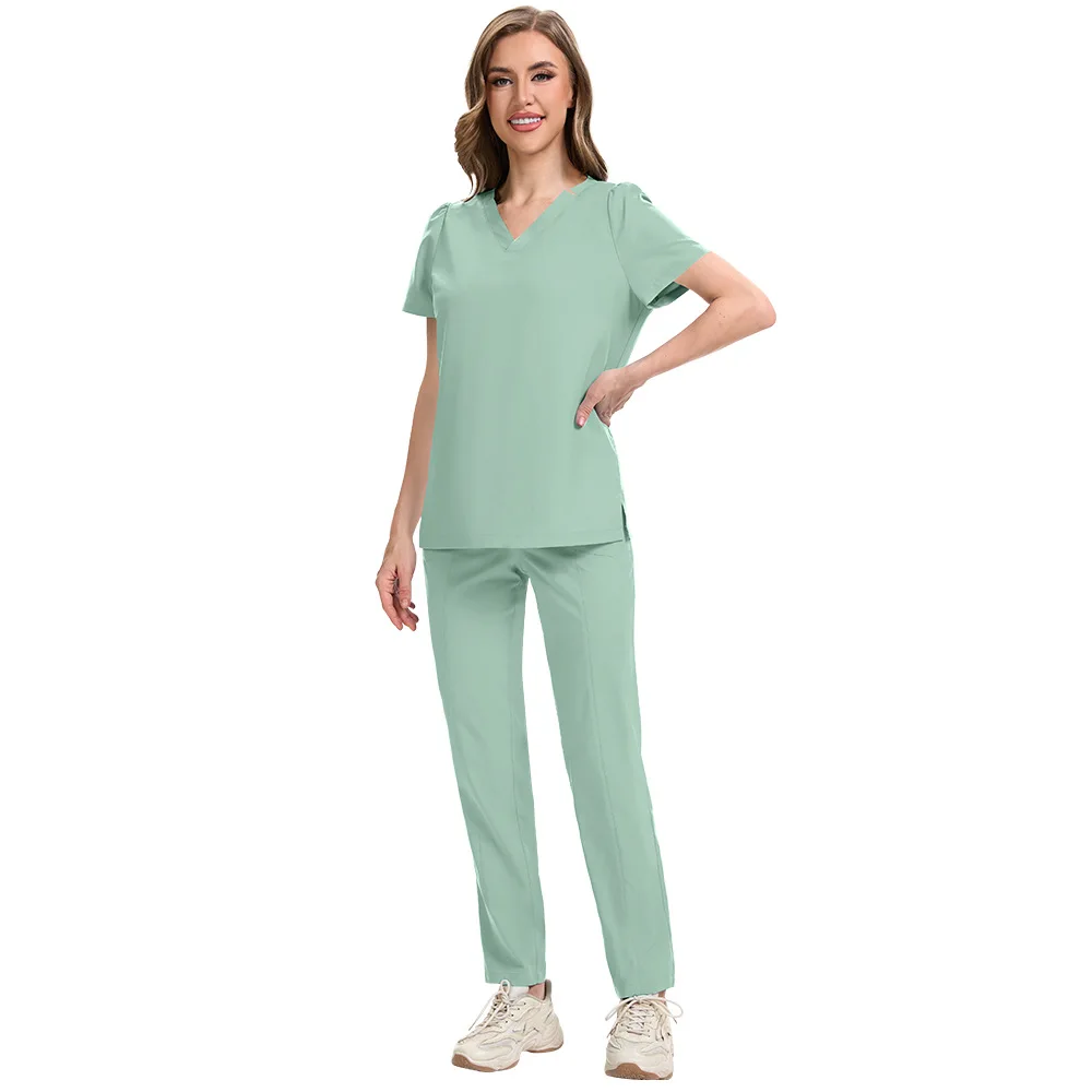 Thin Two Piece Set Women Nursing Scrubs Uniform Beauty Salon Loose and Comfortable V-neck Solid Color Summer Scrubs Uniform
