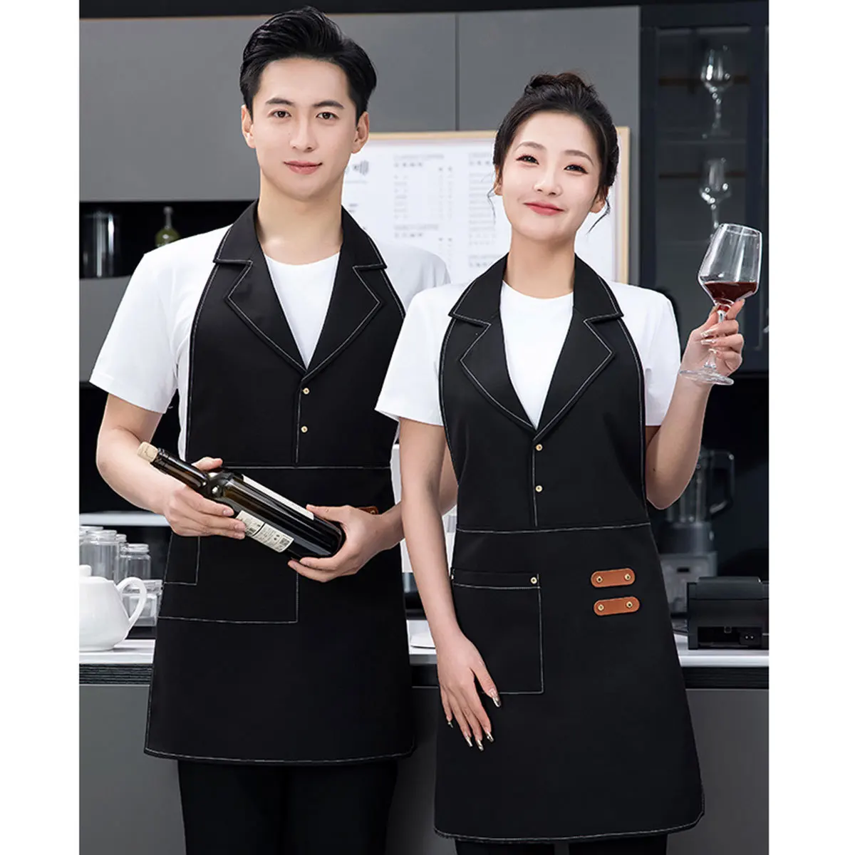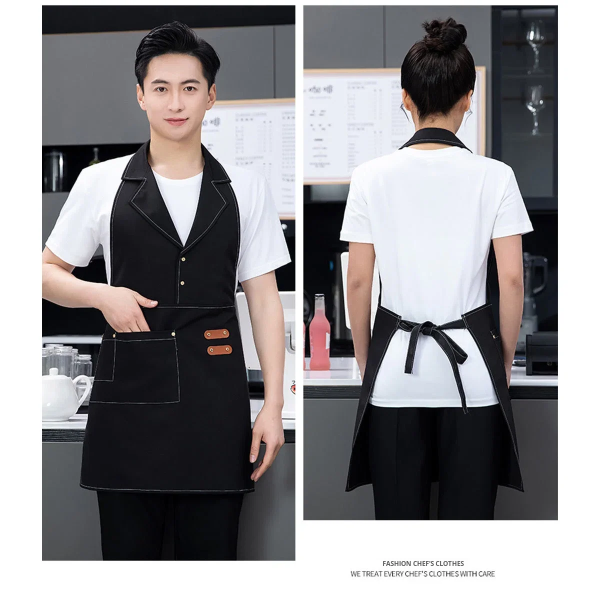 Manufacturer Wholesale Men's Polyester Lapel Apron Korean Fashion Milk Tea Shop Barista Flower Shop Workwear Hairdressing