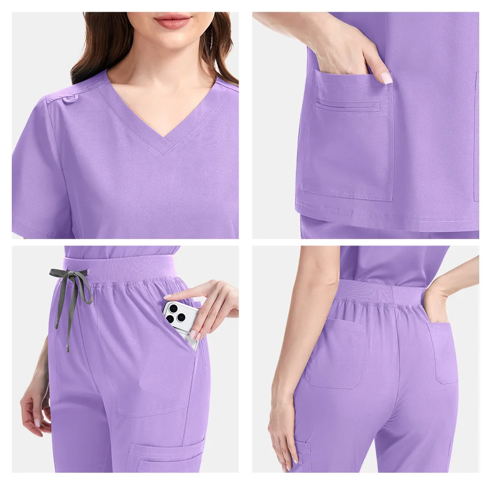 Unisex Elasticity Spandex Polyester Dobby Fabric ODM Surgical Scrub Set Hospital Medical Nursing Nurse Uniforms