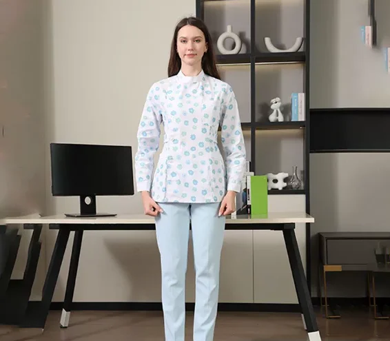 Nurse Scrub Suit Long Short Sleeved Split Knitted Soft Floral Design Hospital Confinement Medical Working Clothes Medical Scrubs