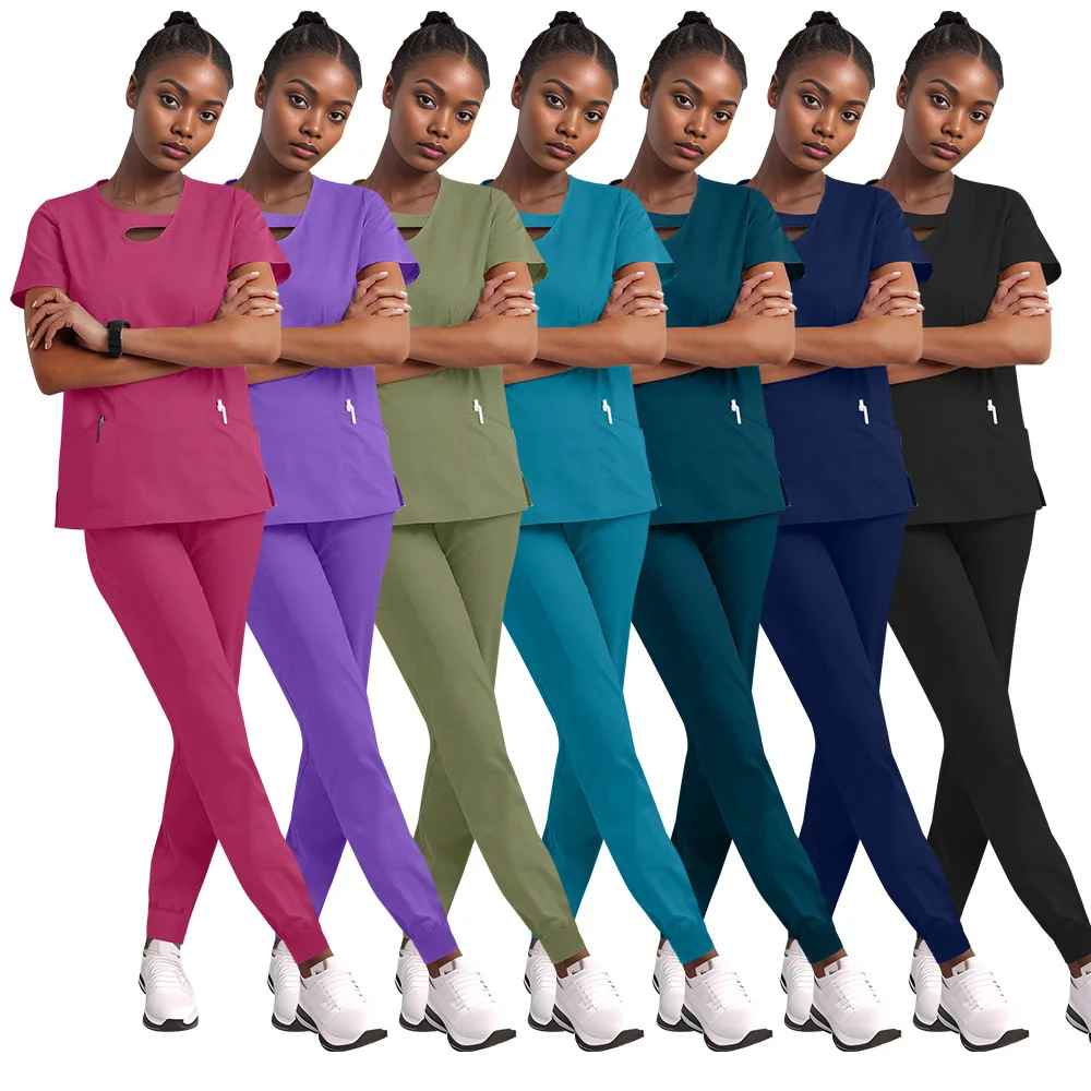 Cheap Knitted Jogger Short Sleeved Nursing Working Clothes Elastic Leisure Two-Piece Set Hand Washing Medical Scrubs Uniform Set