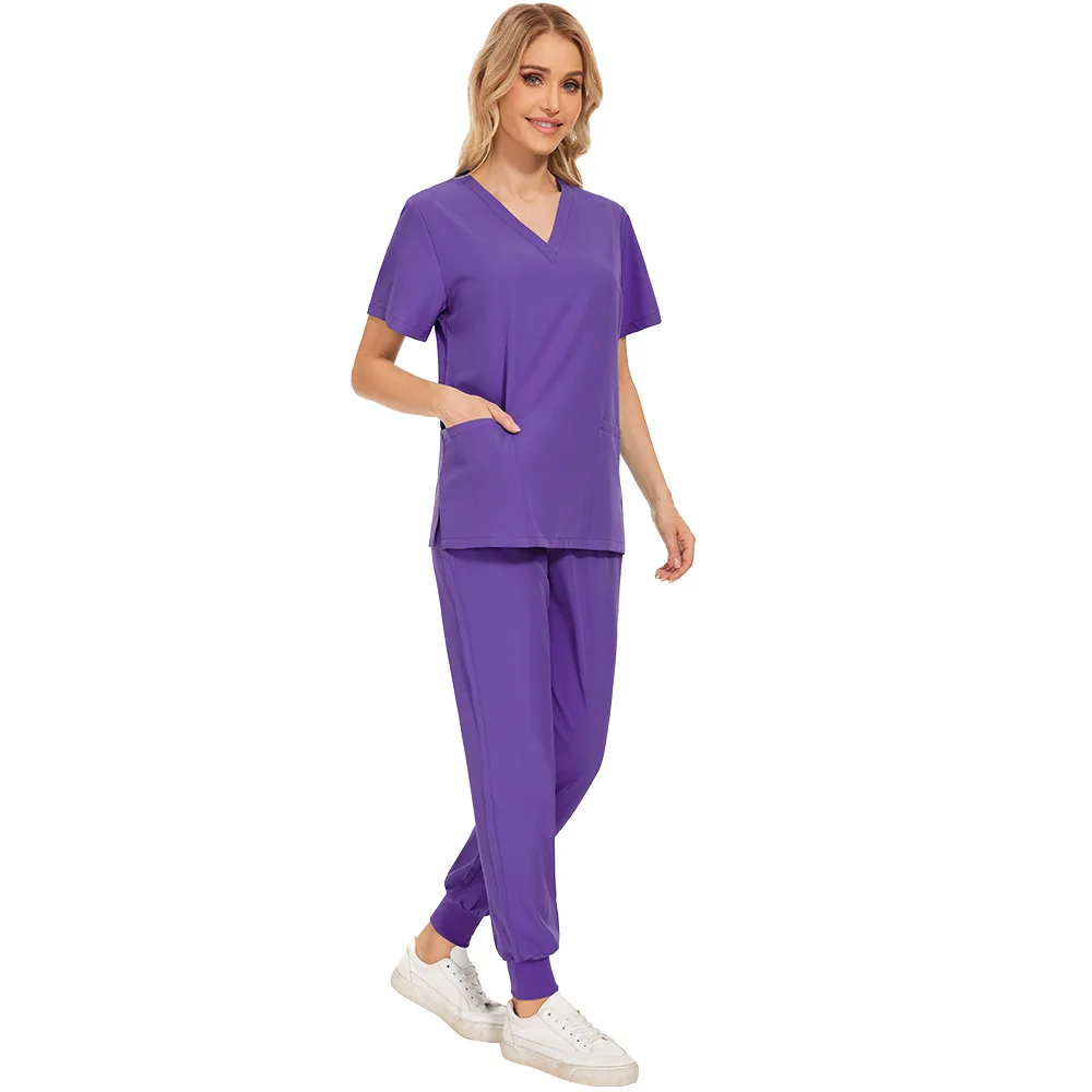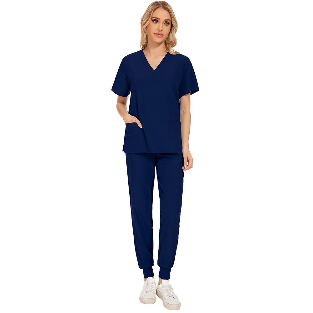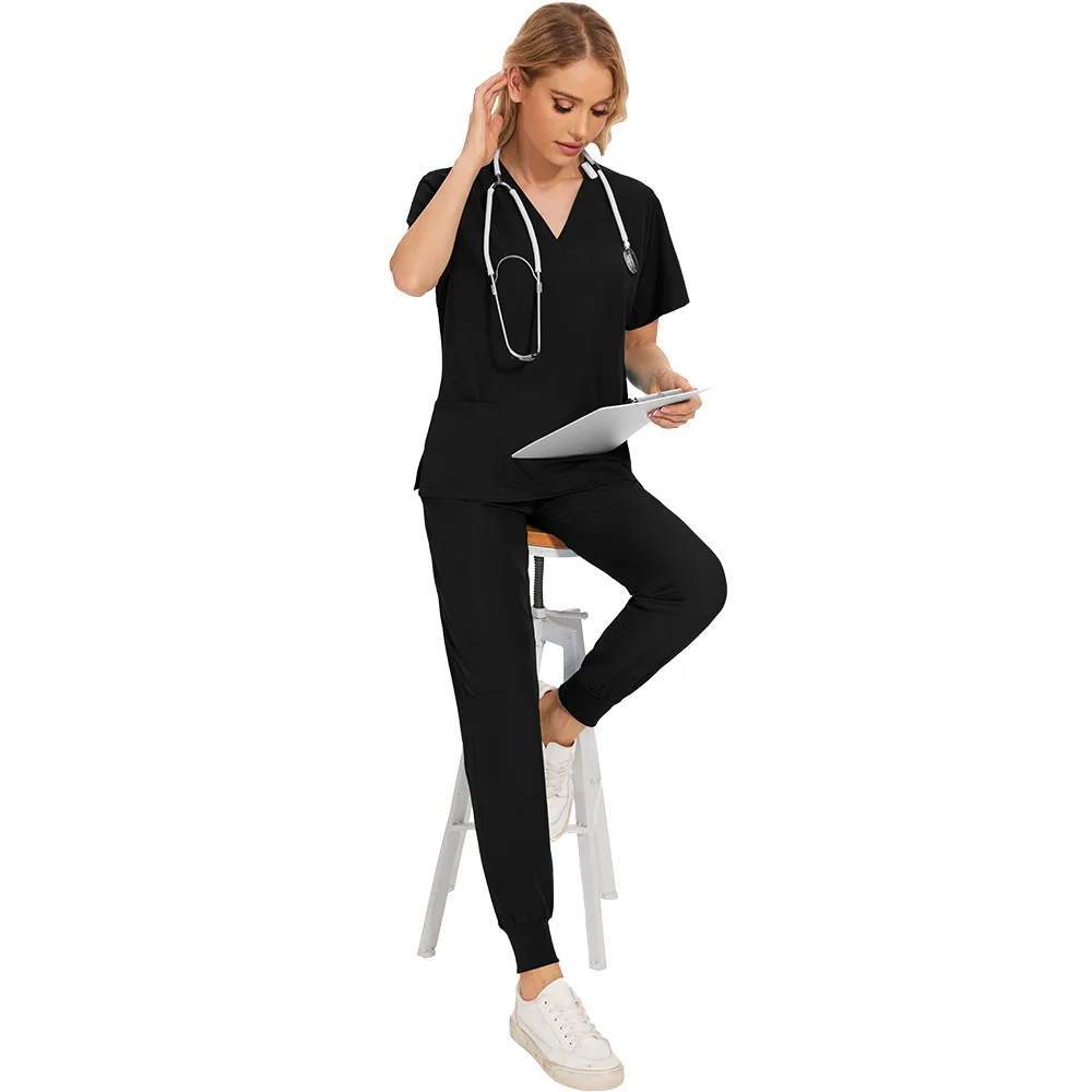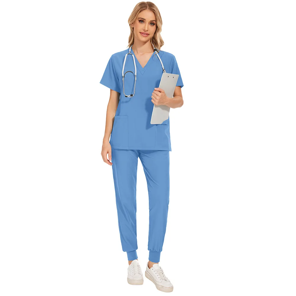 Nurse Women Casual Short Sleeved Apparel Top Pharmacy Working Medical Hospital Doctor Nursing Uniform V-neck Jogger