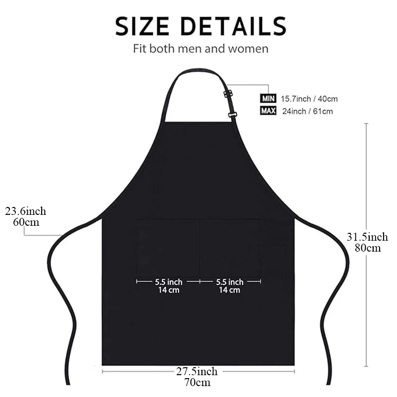 Custom Logo Unisex Bib Aprons with 2 Pockets for Cooking Kitchen Advertising Adjustable Waterproof Extra Large Long Ties Apron