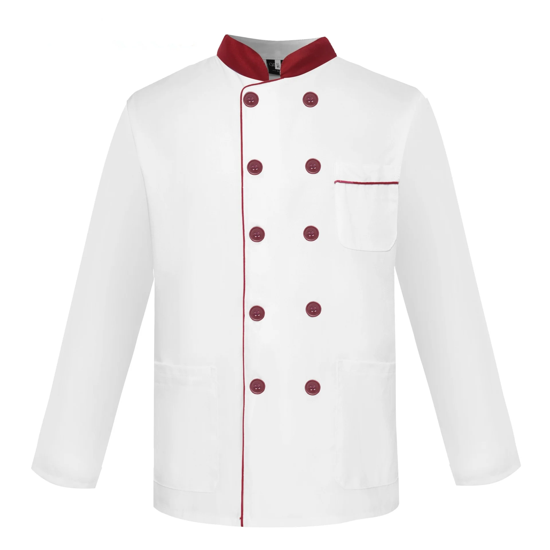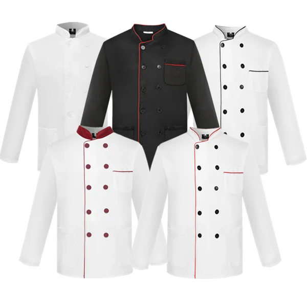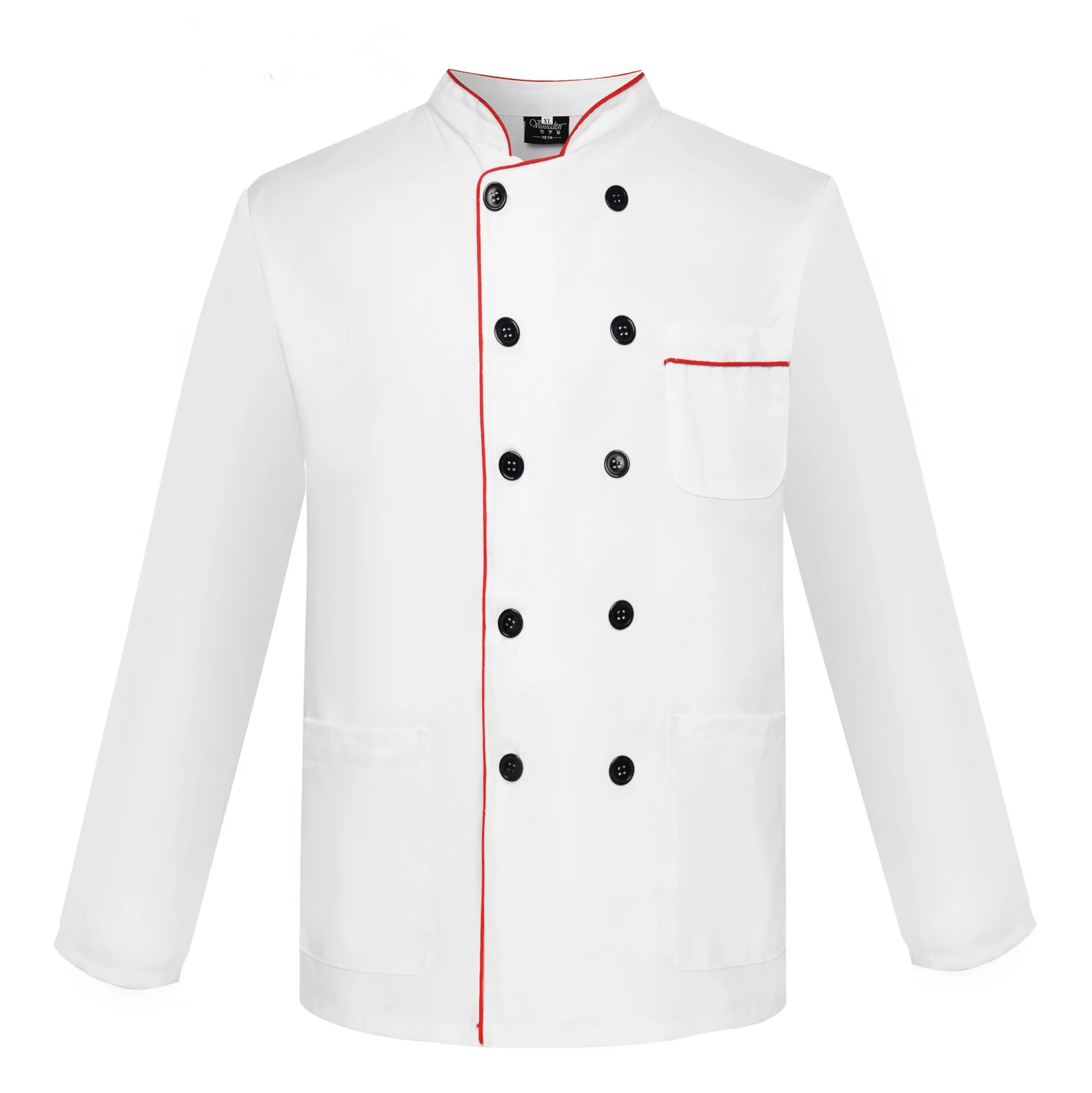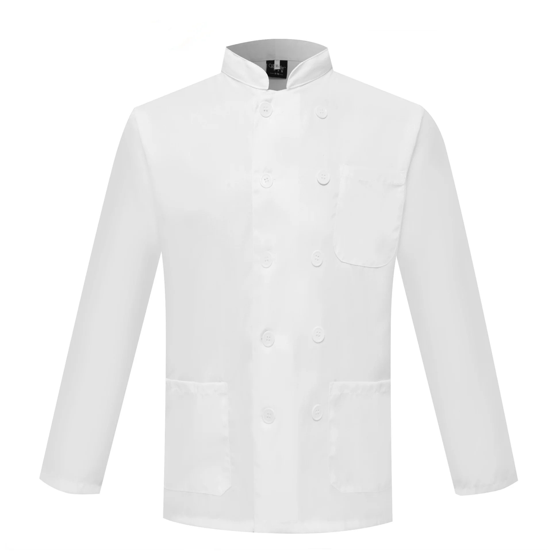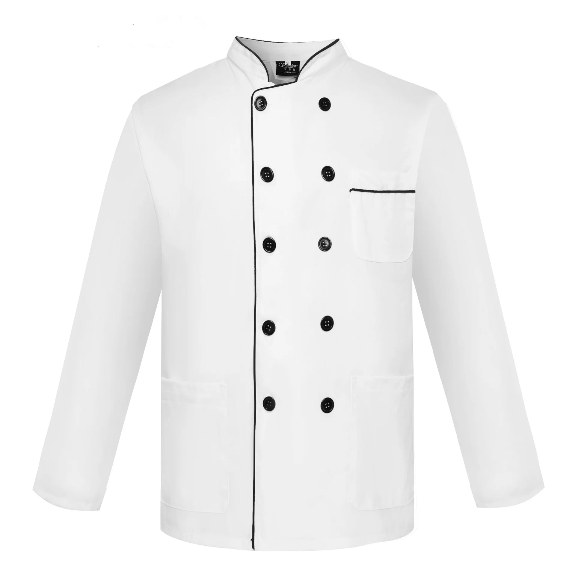 Wholesale Breathable Custom logo Plain Men White Black Chef Coat Restaurant Kitchen Cotton Poplyester Unisex Chef Jacket Uniform
