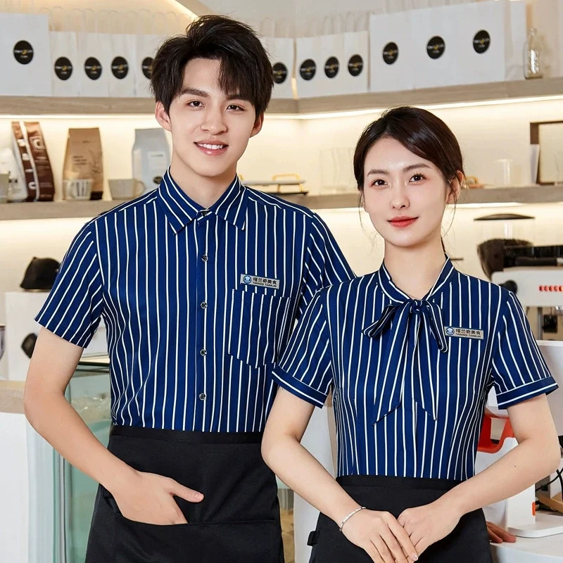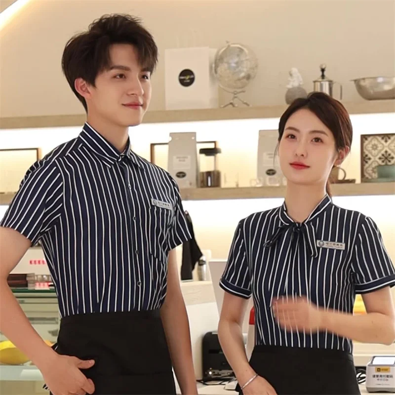 Wholesale Hotel Restaurant Server Catering Kitchen Pub Bar Staff Working Uniform Button Down Waiter Waitress Short Sleeve Shirt