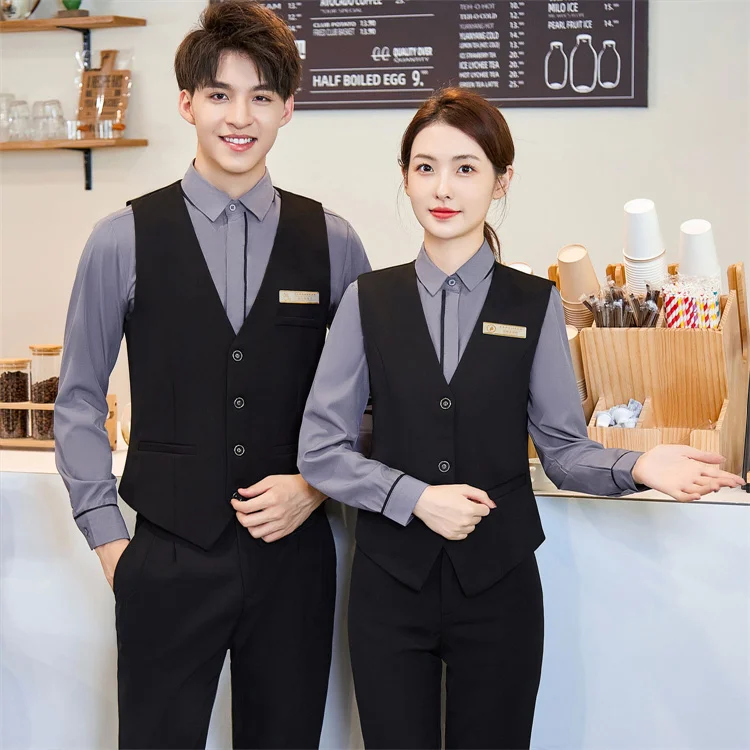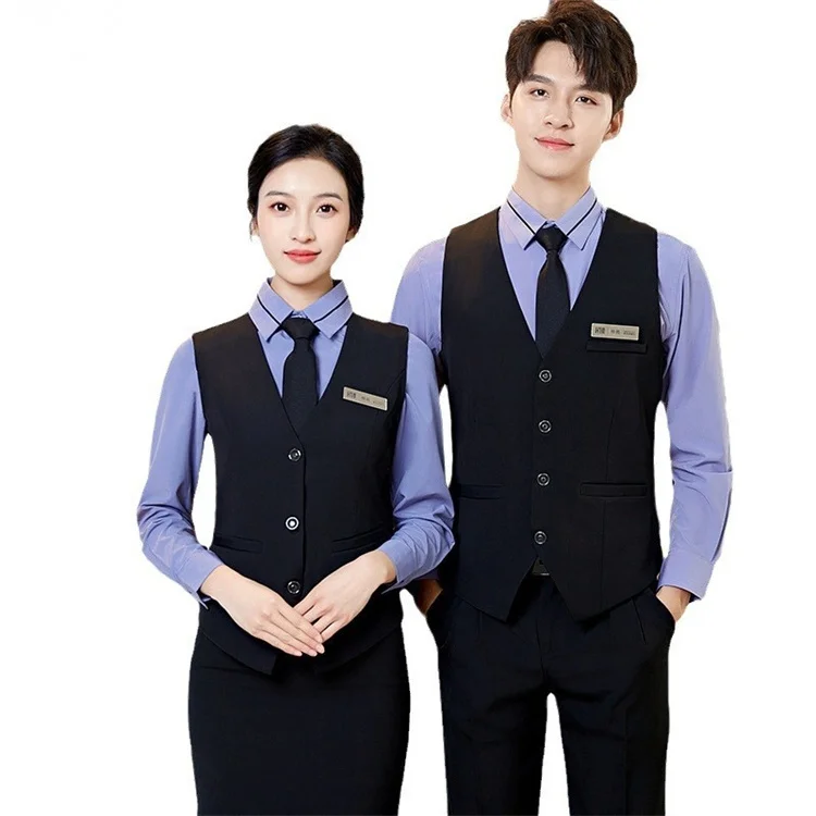 Hotel Restaurant Server Catering Kitchen Wait Staff Oem logo Custom Working Button Down Uniform Waiter Waitress Waistcoat Vest