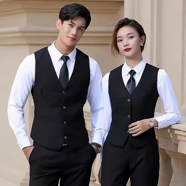 Professional Unisex Vestsuit for Front Desk Bar KTV Waiter Catering Hotel Work Clothes With Long Sleeves for Men and Women