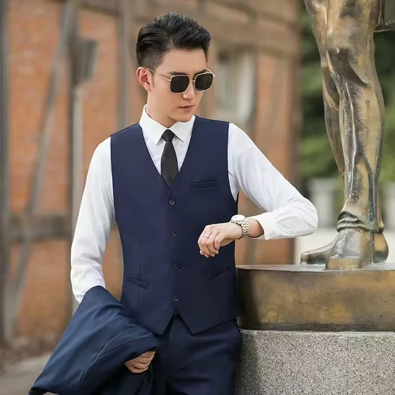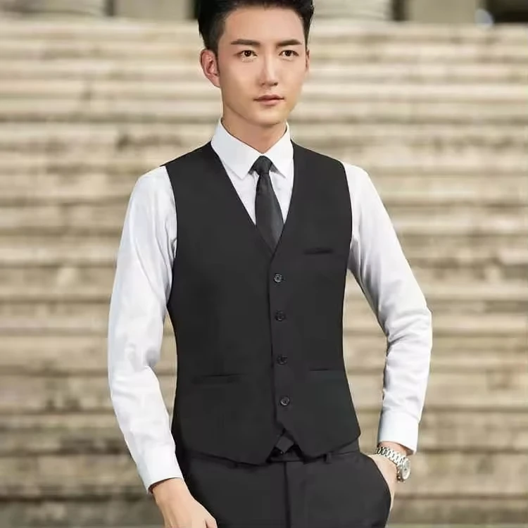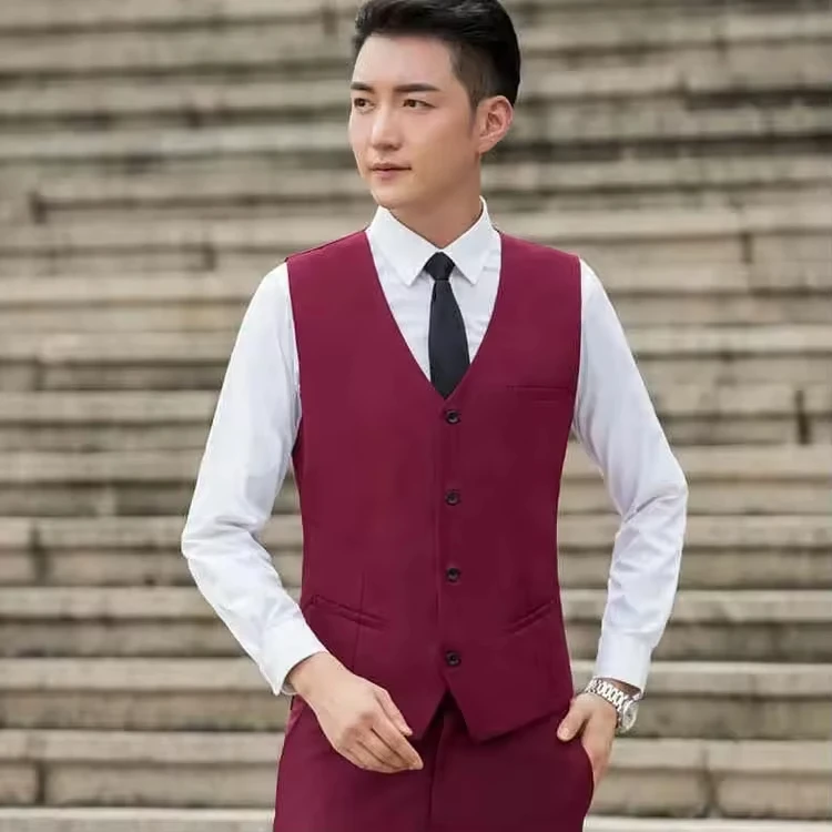 Mens Burgundy Restaurant Waistcoats Waiters Uniforms Classic Suit Vests Gentlemen Sleeveless Jacket Formal Clothes Work Vest