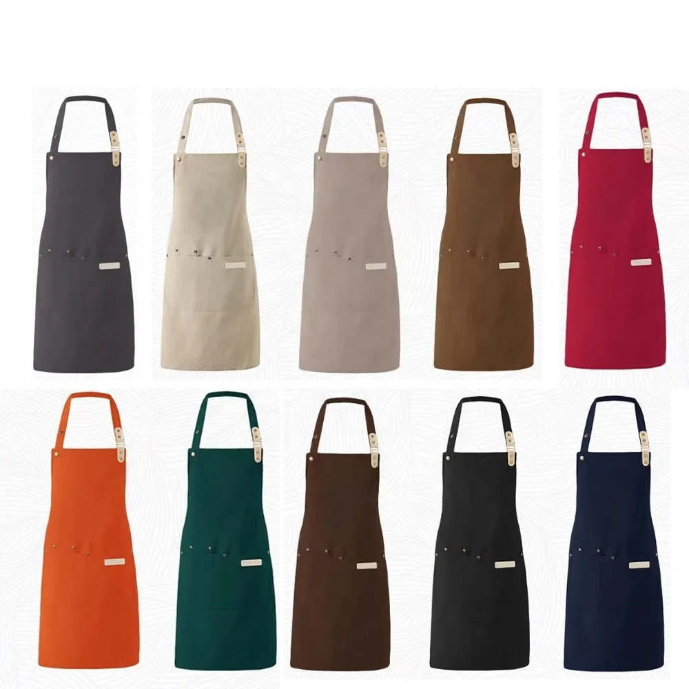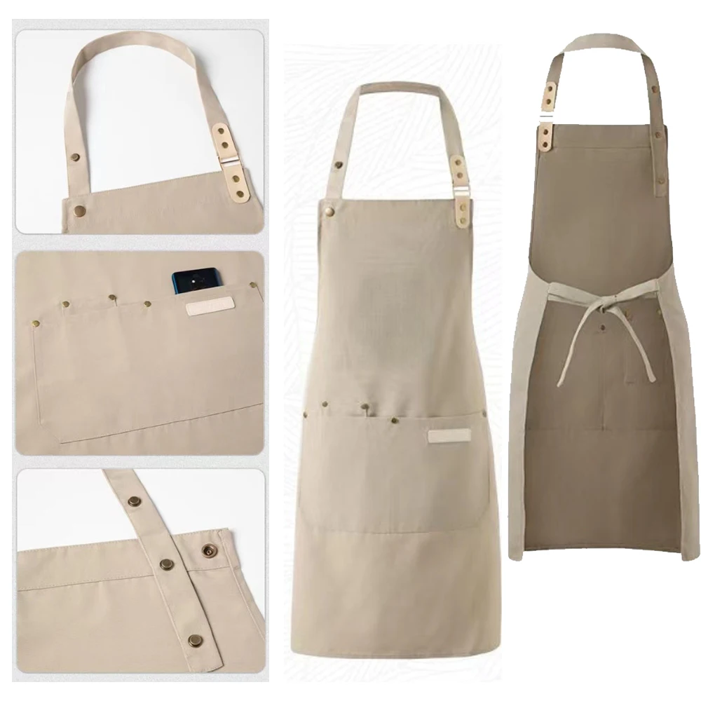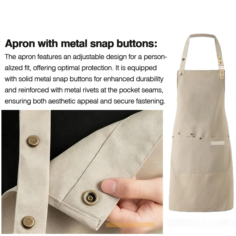 Metal Snap Khaki Women Coffee Shop Chef Apron Kitchen Nail Tech Khaki Nails Apron Custom logo