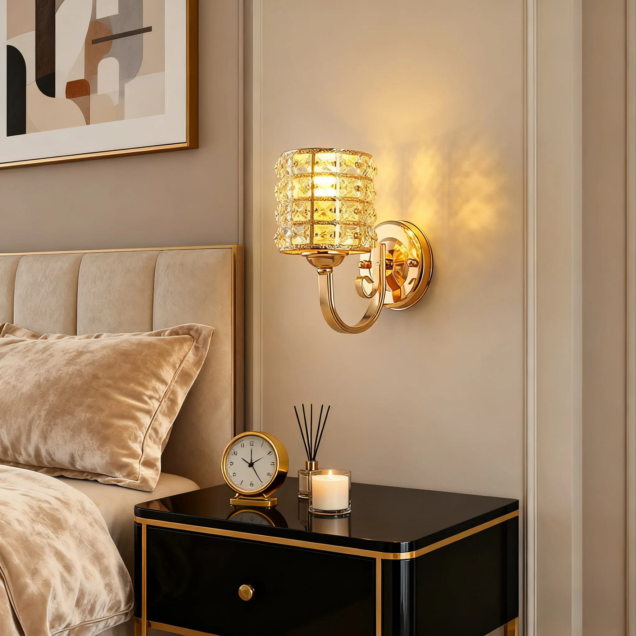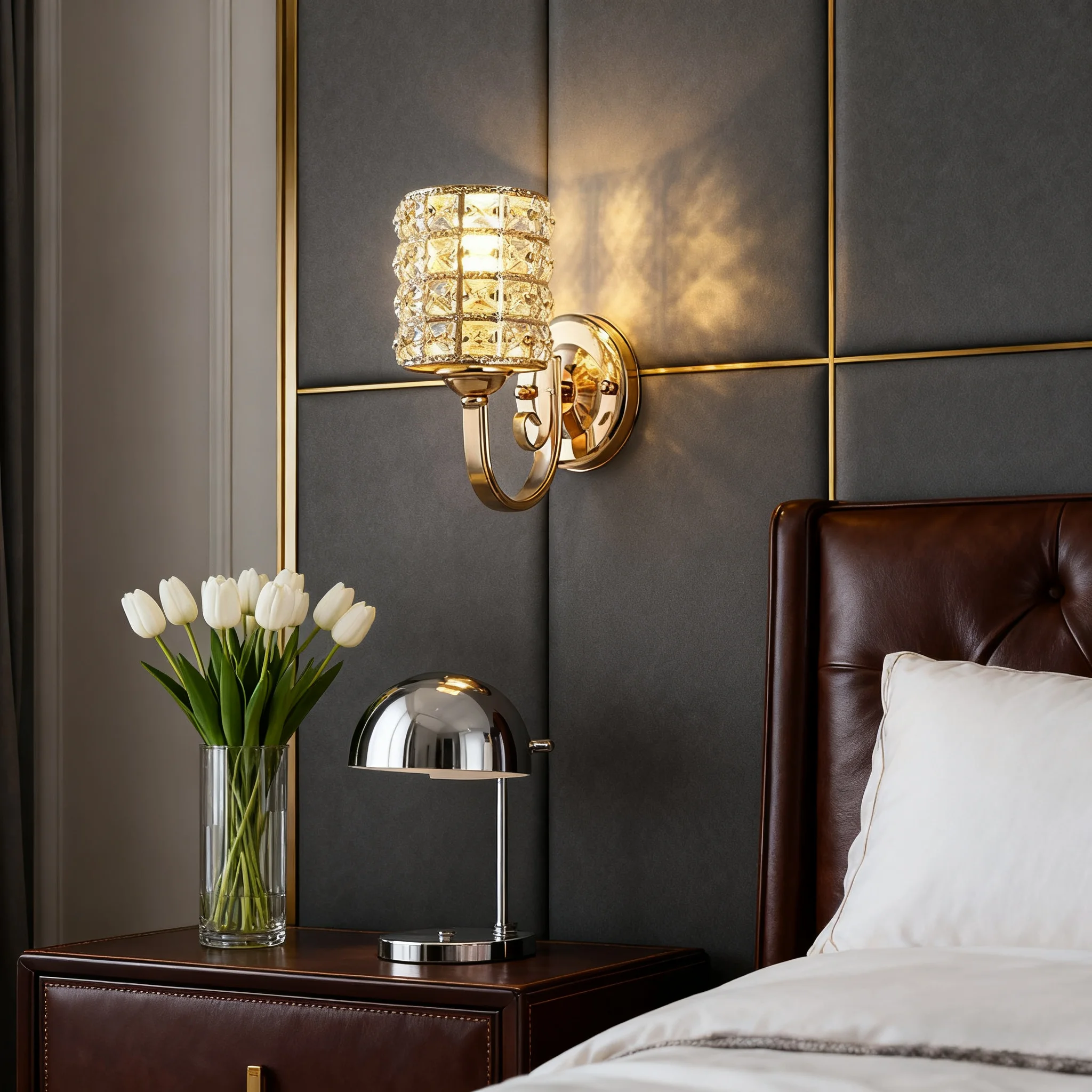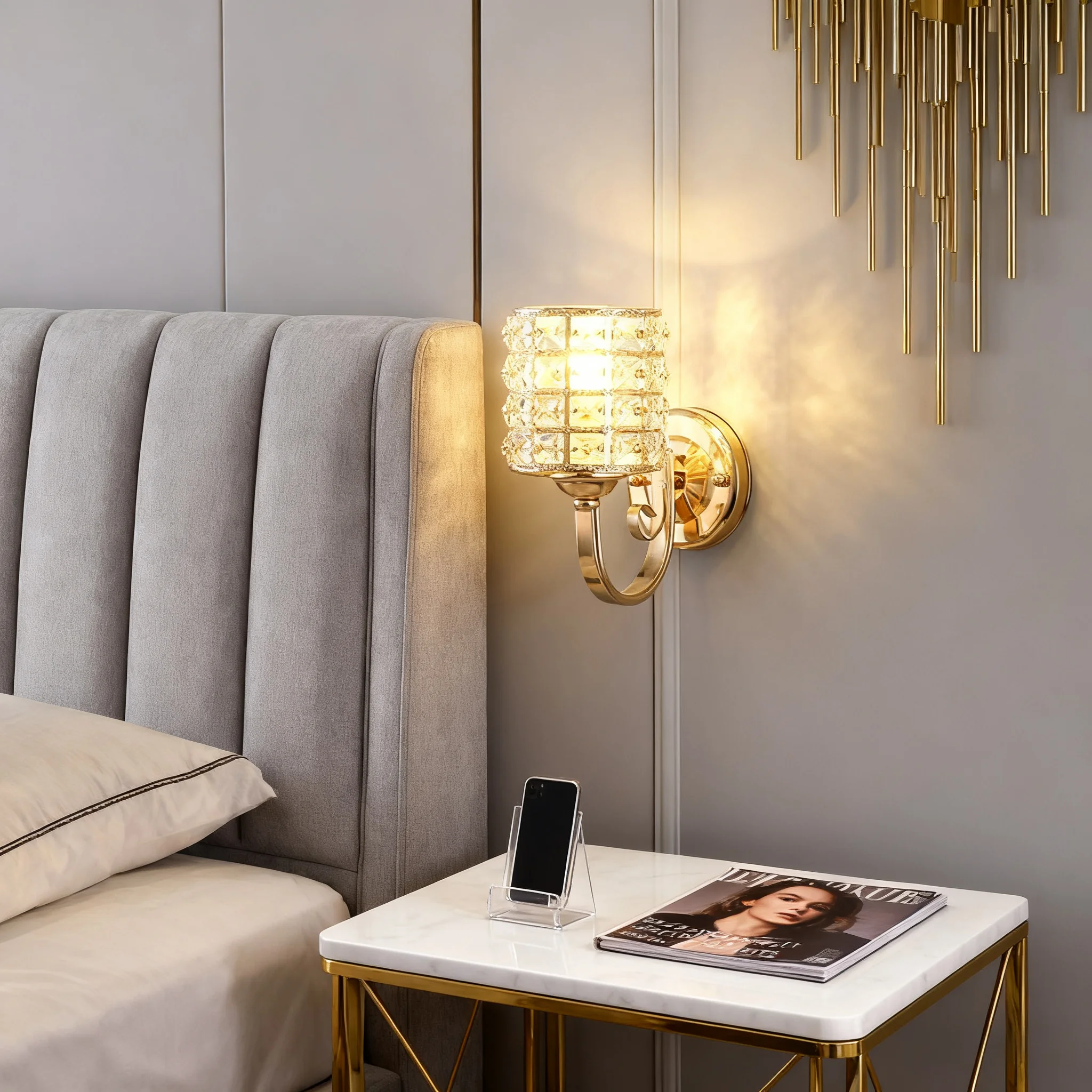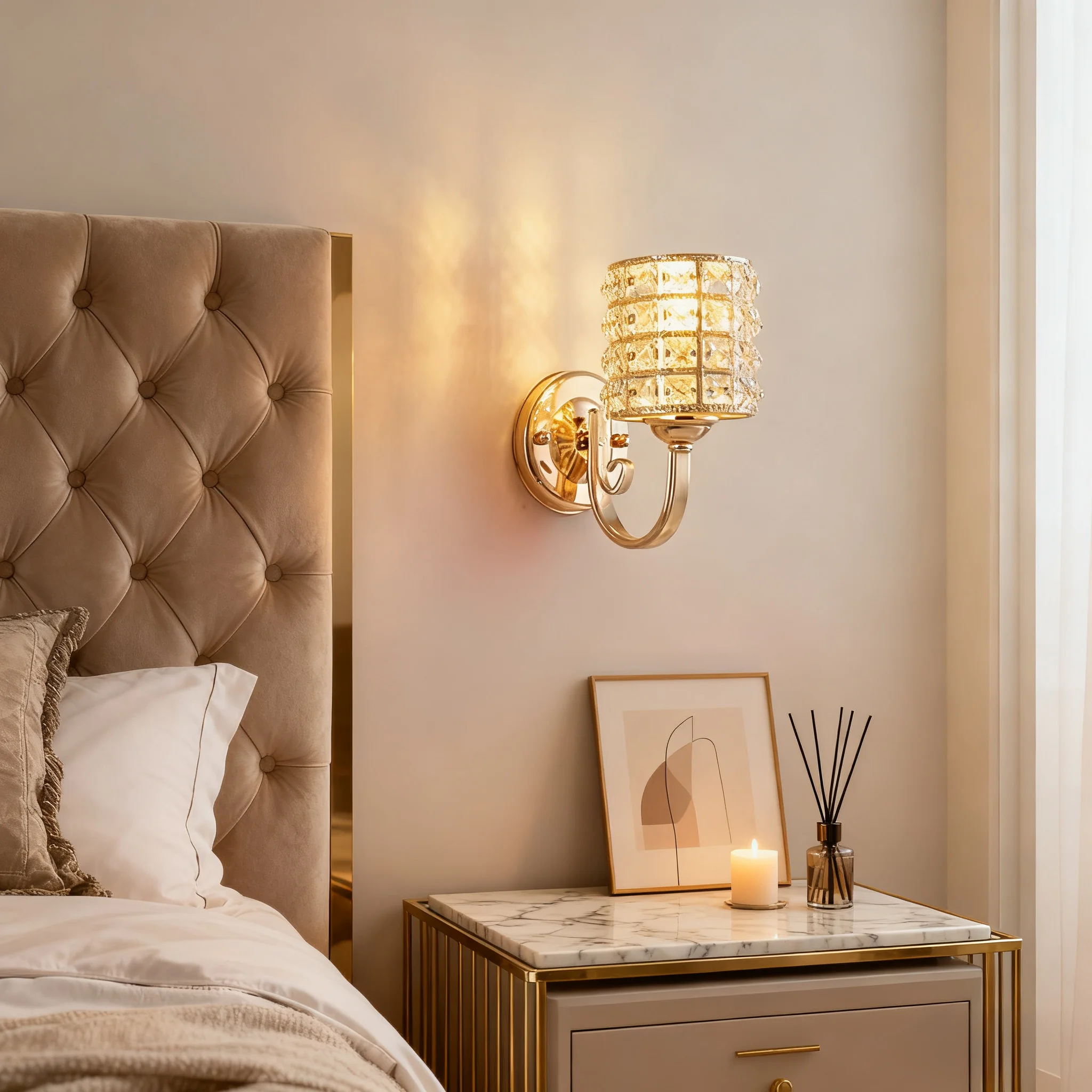 JACKSUN Modern LED Crystal Wall Lamp for Indoor Luxury Design for Living Room Corridor Bedside Wall Lighting for Hotels