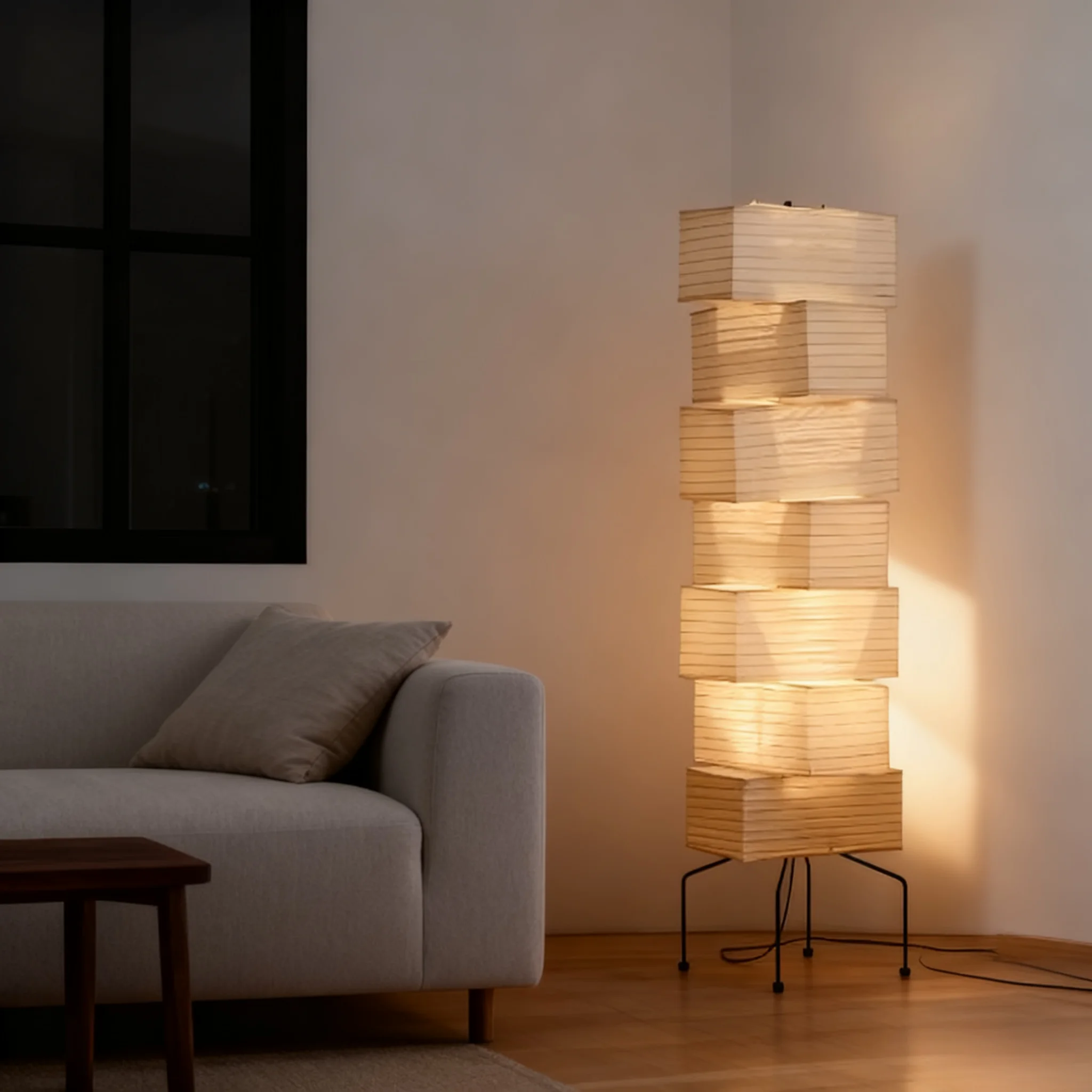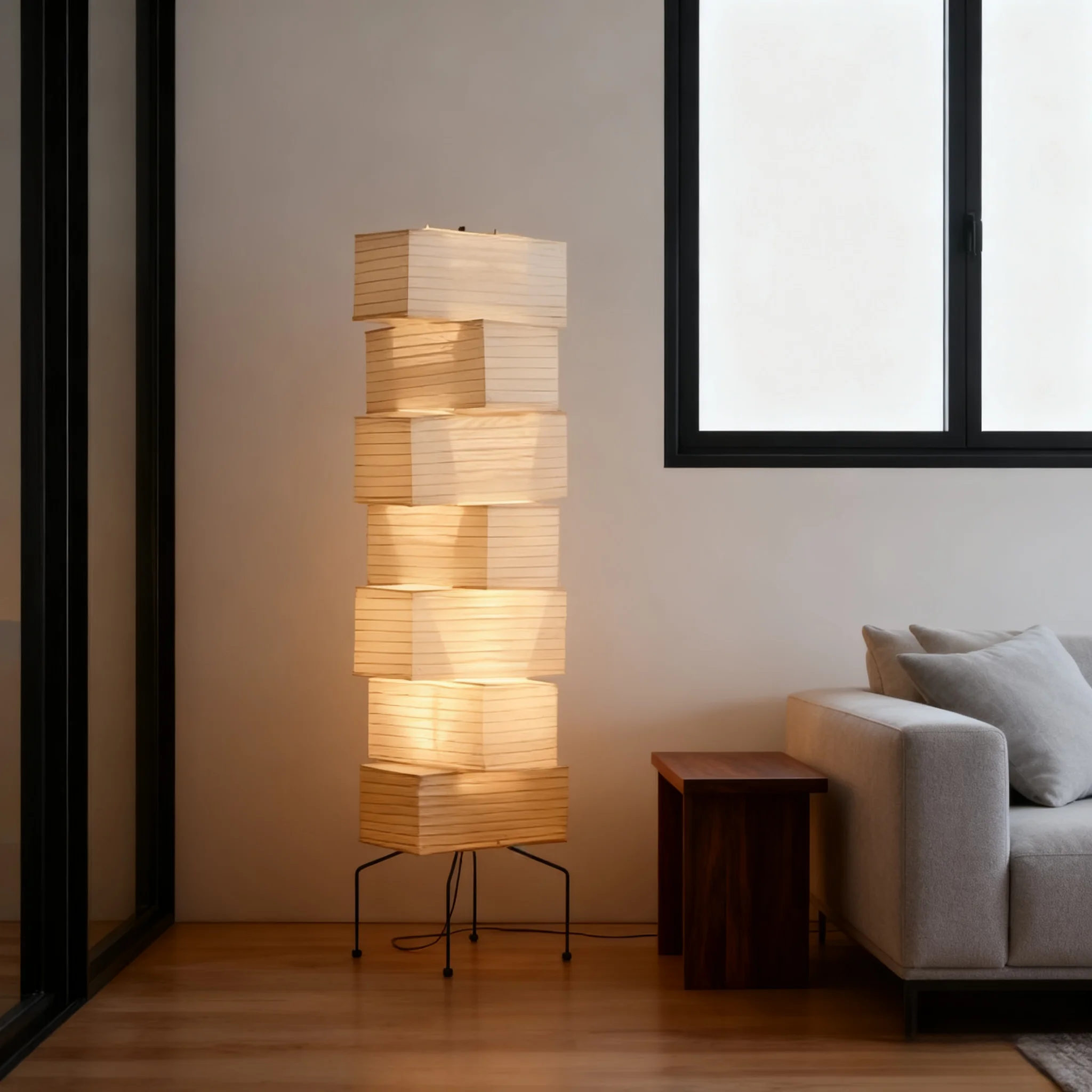 JACKSUN Luxury Modern LED Rice Paper Floor Lamp with Iron Frame Large Size for Living Room & Study Decor Floor Light