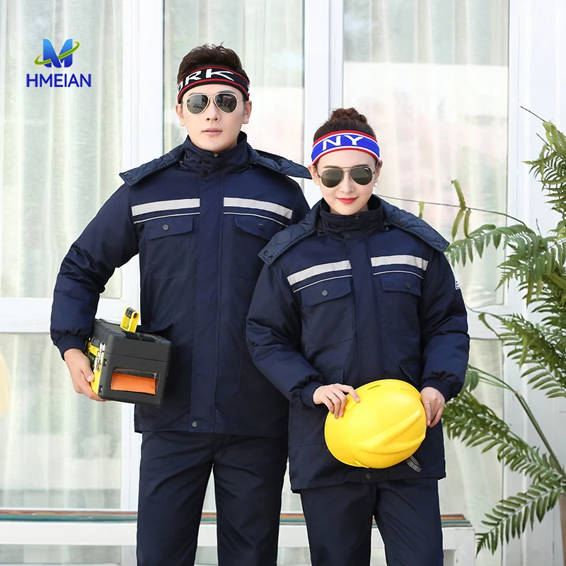 Thickened Cotton Jacket for Workshop Factory Cold-Proof Reflective Labor Workwear Jacket Men Winter Work Clothes