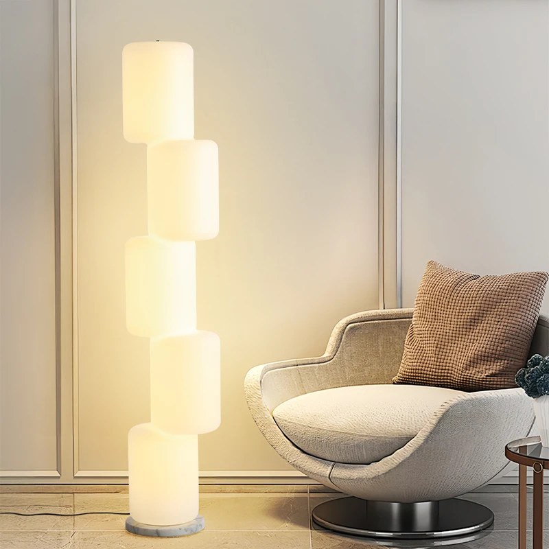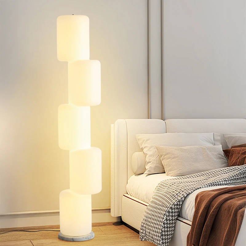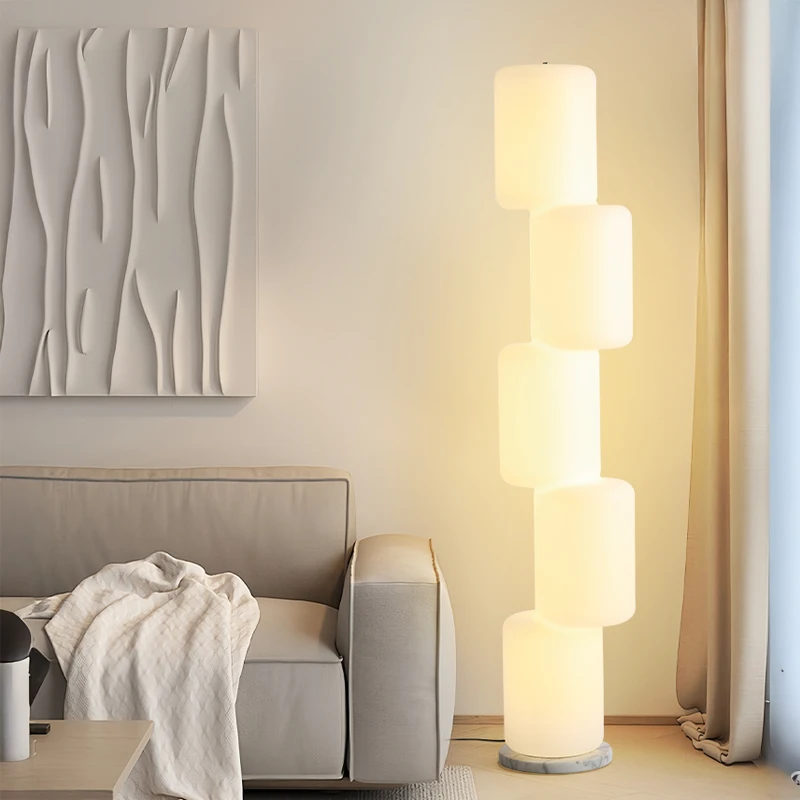 Nordic Retro Japanese Style LED Floor Lamp Modern E27 Base with White Vertical Wood Grain for Living Room Daylight Tea Reference