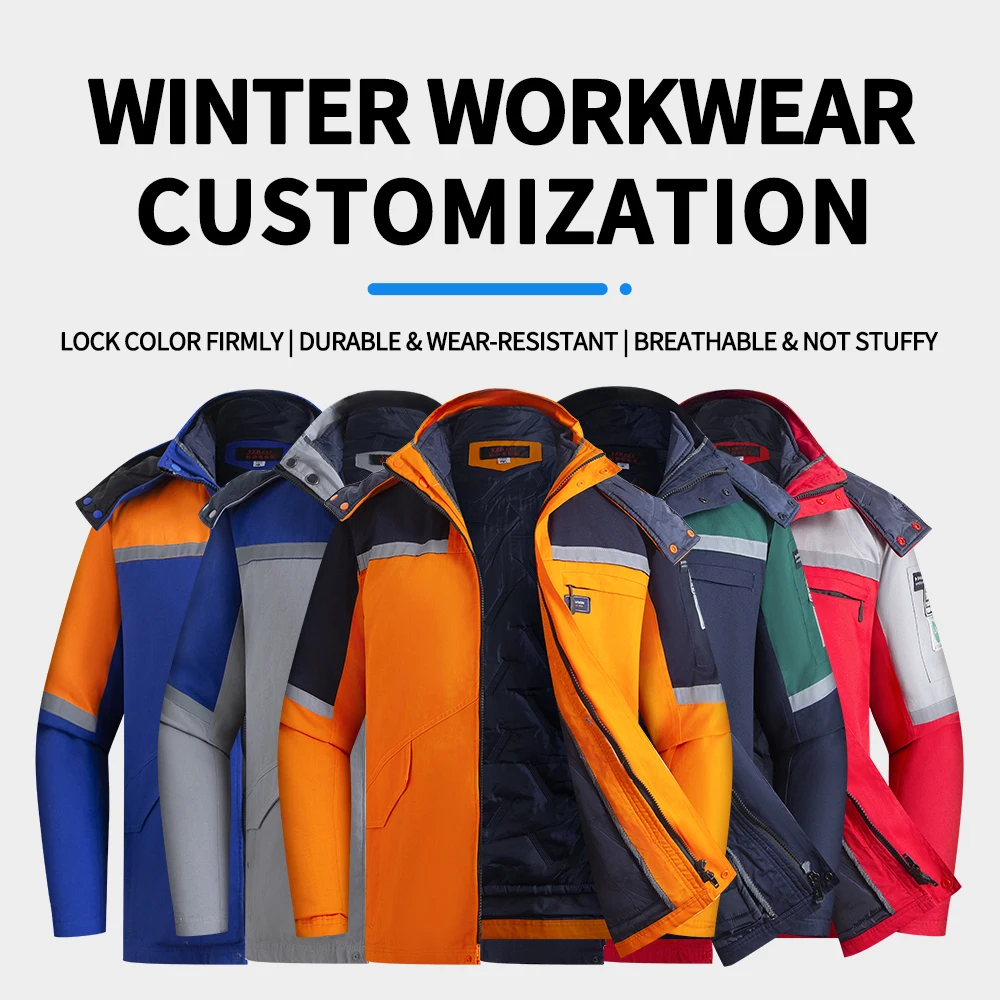 Direct Factory Custom Cotton-Padded Gas Station Workers-Jacket for Winter Work Workwear Custom Design Workwear