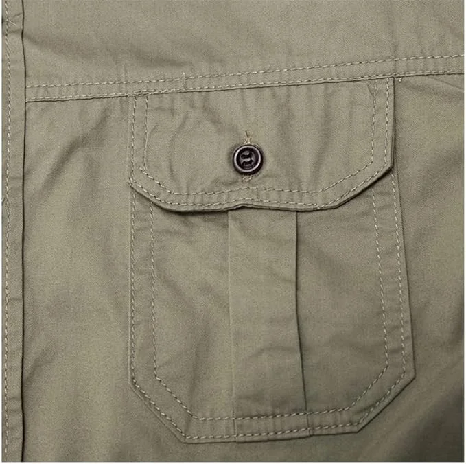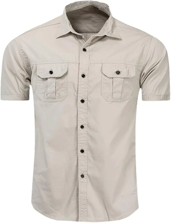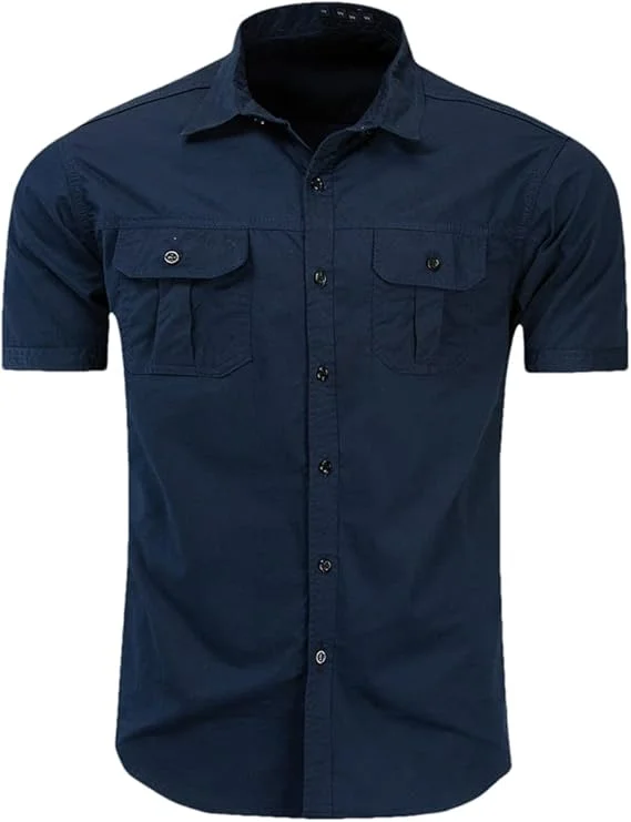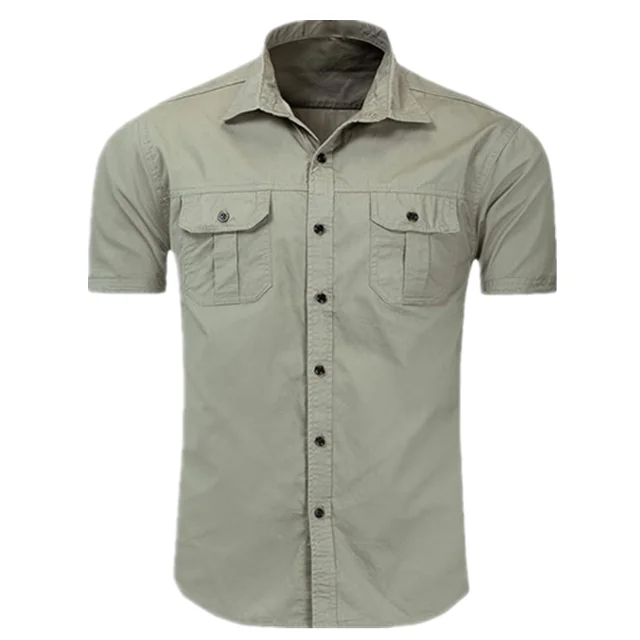 Short Sleeved Men's Shirt Classic Spread Collar Casual Solid Shirt Two Patch Pockets Work Fishing Shirts for Men