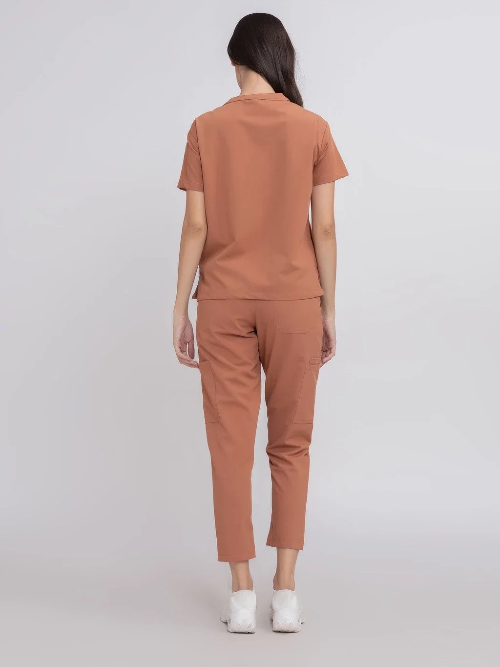 Custom Women's Short-Sleeve Medical Scrub Uniform Set Solid Rust Color Comfortable Stretch for Healthcare Workers Nursing Scrubs