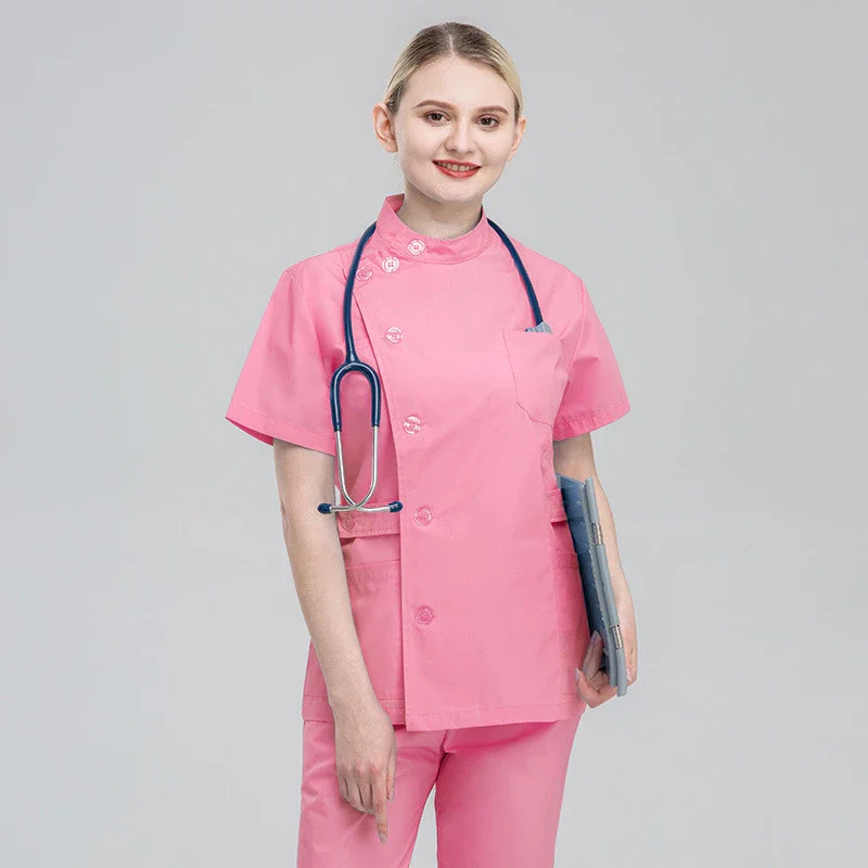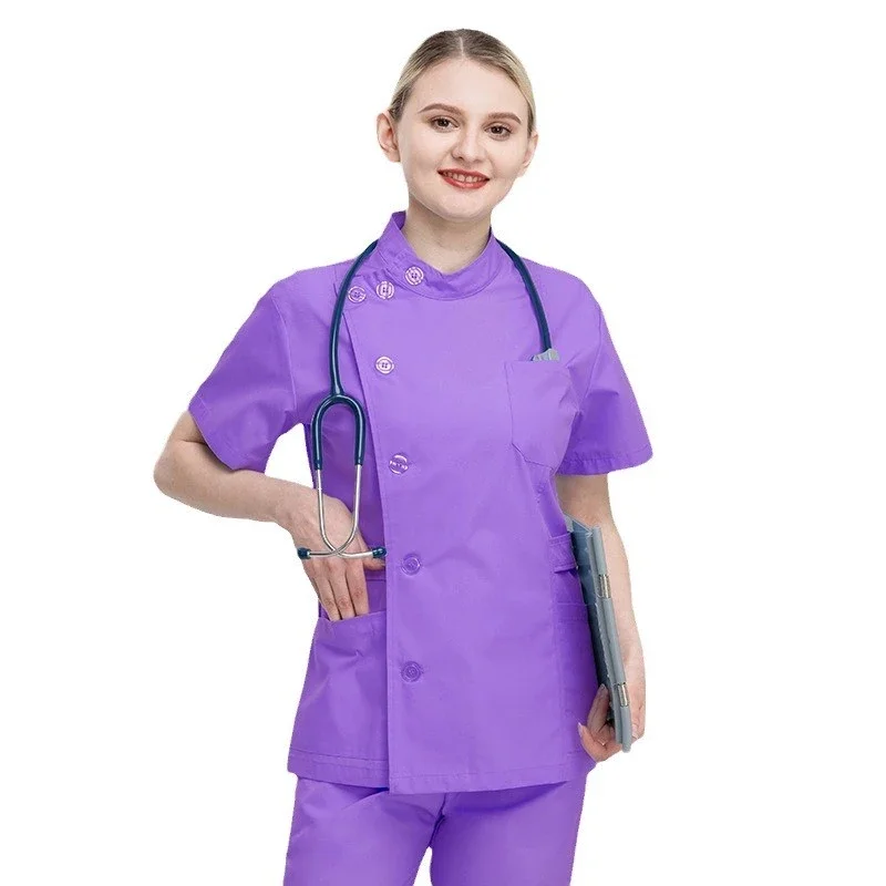 Multi-Color Scrub Suit Nurse Uniform Side Opening Button Short Sleeve Trousers Hospital Front Stage WorkWear Clothes Suit