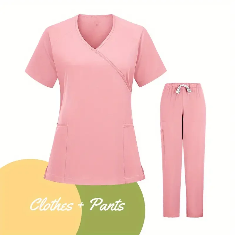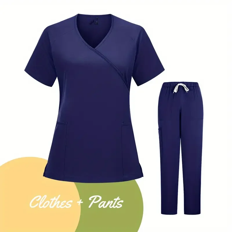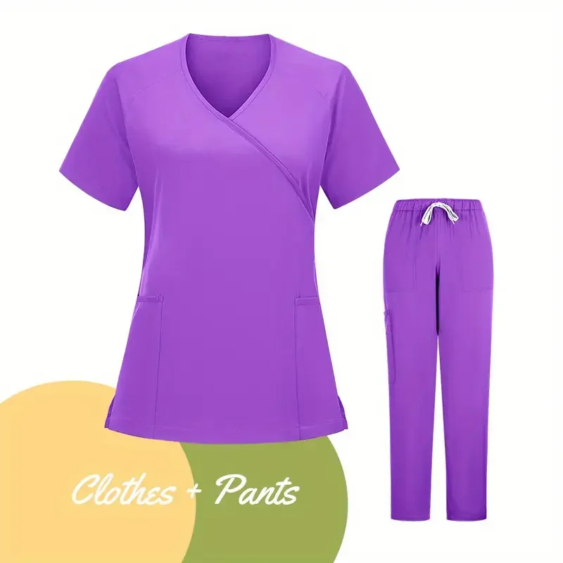2026 Summer Women Casual Elastic Hand Purpose Beauty Salon Workwear Uniform Hand Purpose Hand Purpose Set Split Scrub Suit