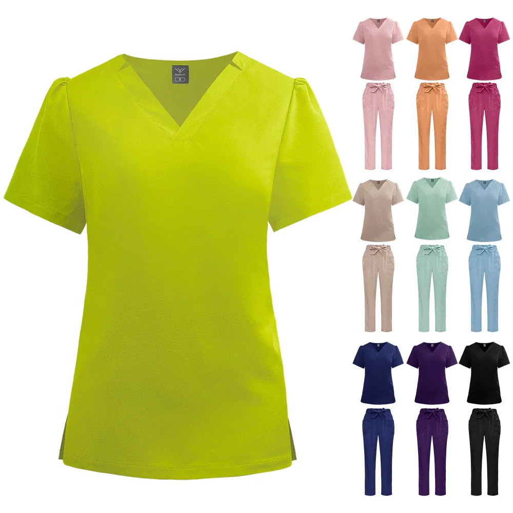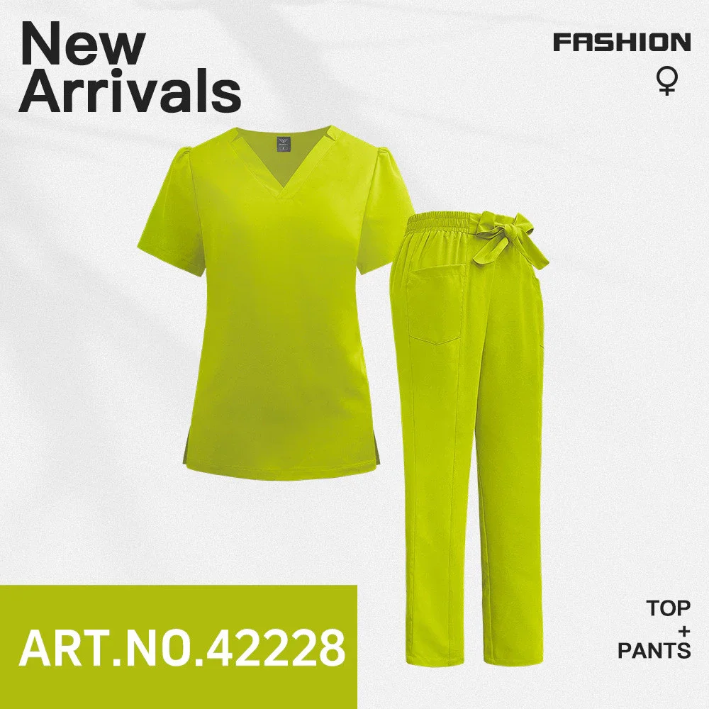 Women's New Quick-Dry Scrub Suit Beauty Salon SPA Bowknot Solid Color Hospital Work Nurse Uniform Scrub Set Medical Uniform
