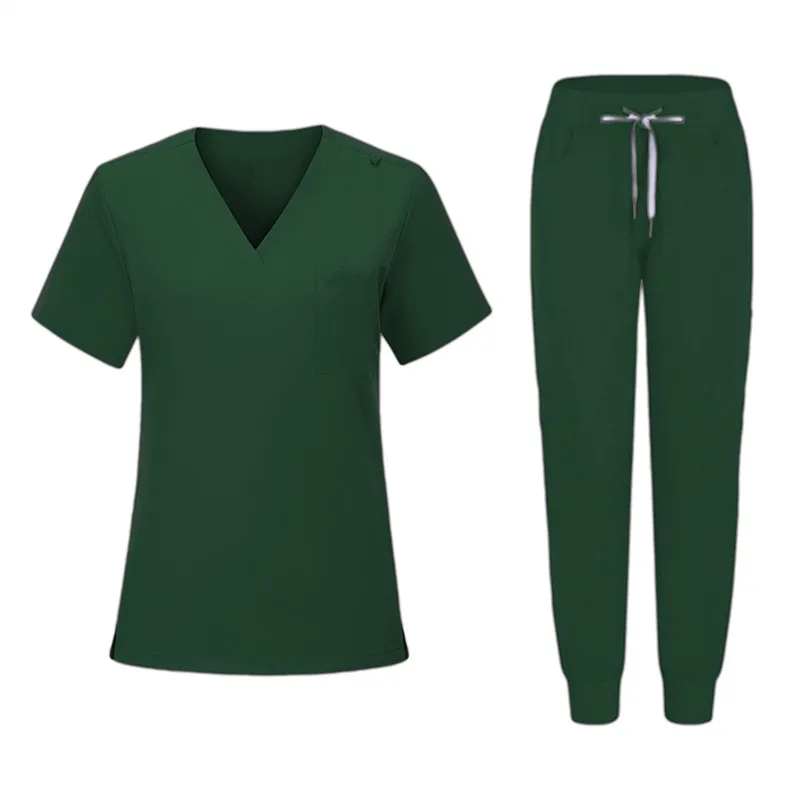 High Quality Breathable Woven Women's Nursing Scrub Sets Straight Pants Tall Hospital Uniforms Seamless Fusing