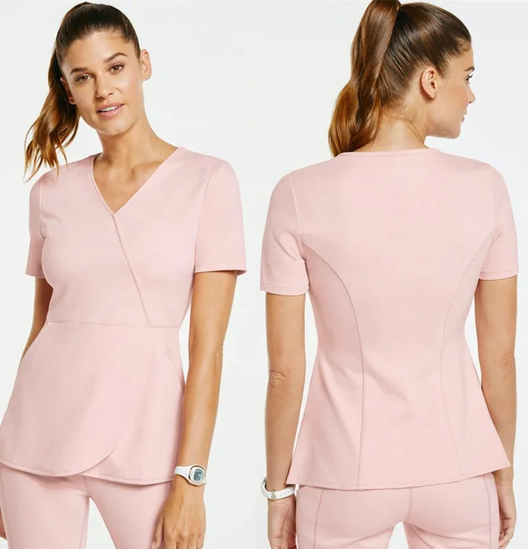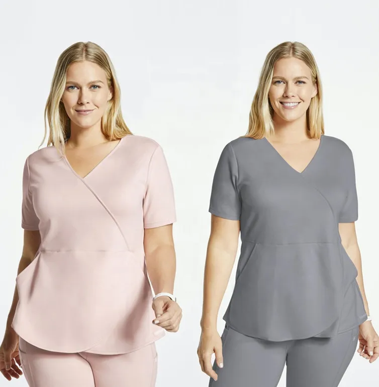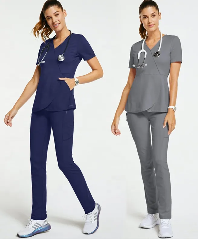 Private Label Women Stylish Comfortable Athletic Sporty Hospital Uniform Woven Spandex Medical Nursing Scrub Uniform Sets Custom