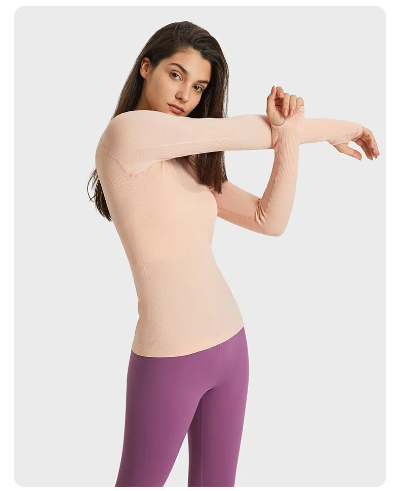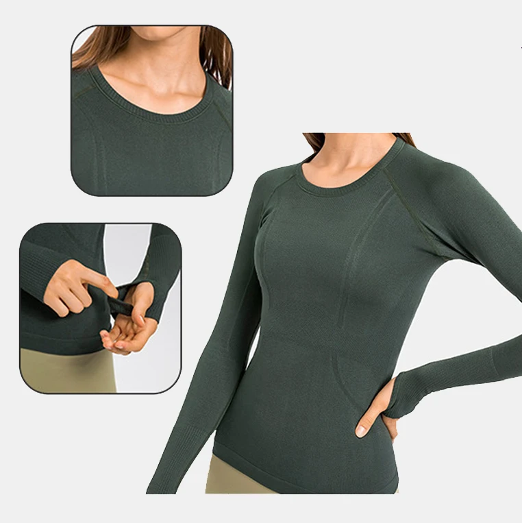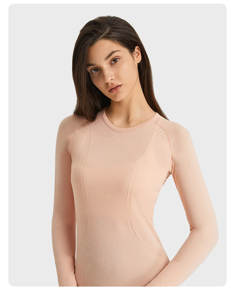 New Seamless Spandex Nurse Underscrub Top Fashion Hospital Women Long Sleeve Slim Fit Crew Neck Woven Medical Uniforms