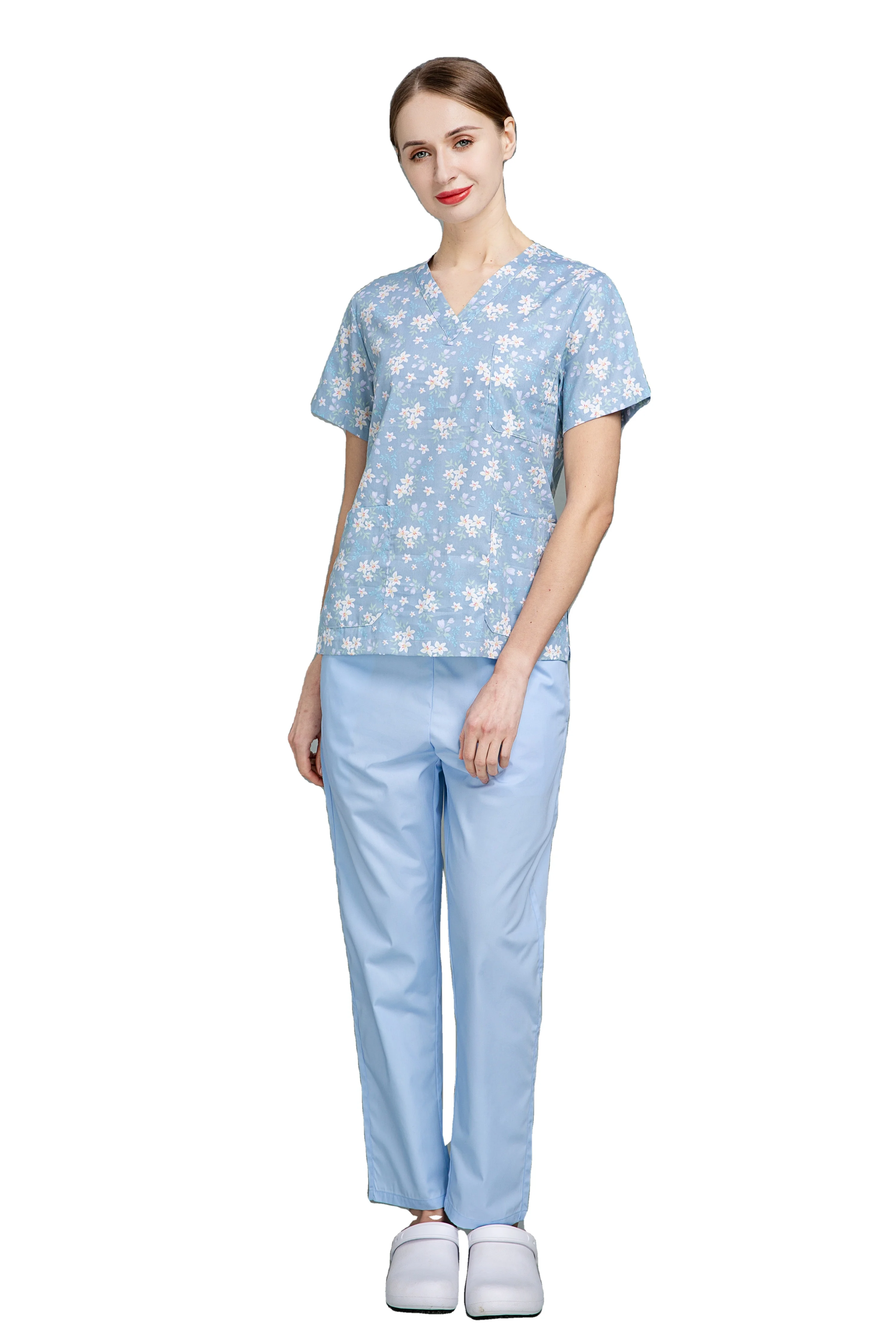 Wholesale Women's Hospital Scrub Set Woven Fabric Custom Logo Nursing Uniforms Medical Scrubs