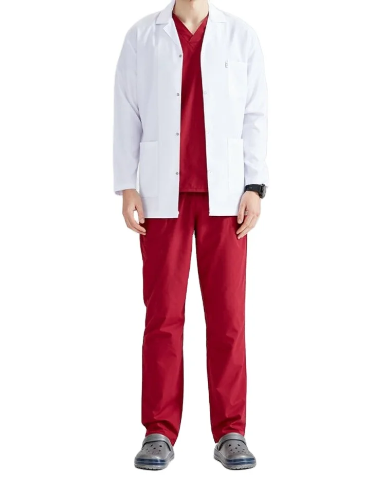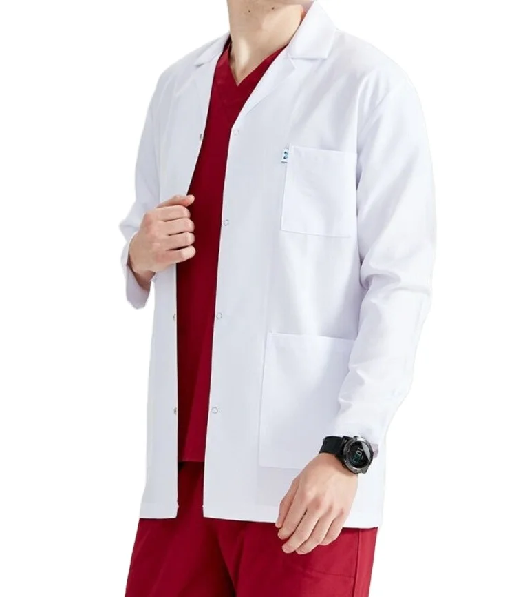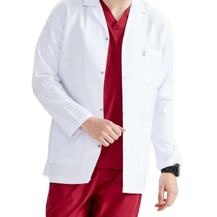 Custom White Doctor Lab Coat Breathable Cotton Scrub Anti-Wrinkle Hospital Uniform Stretch Medical Scrub Jacket