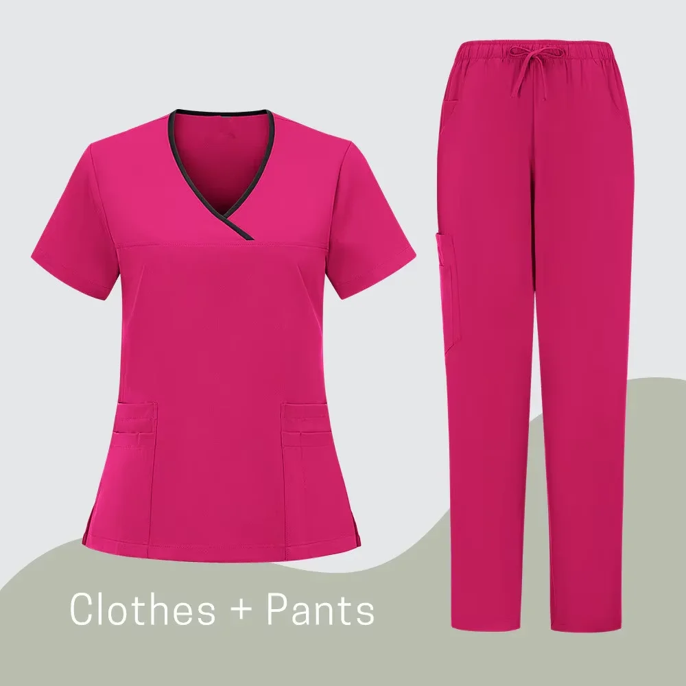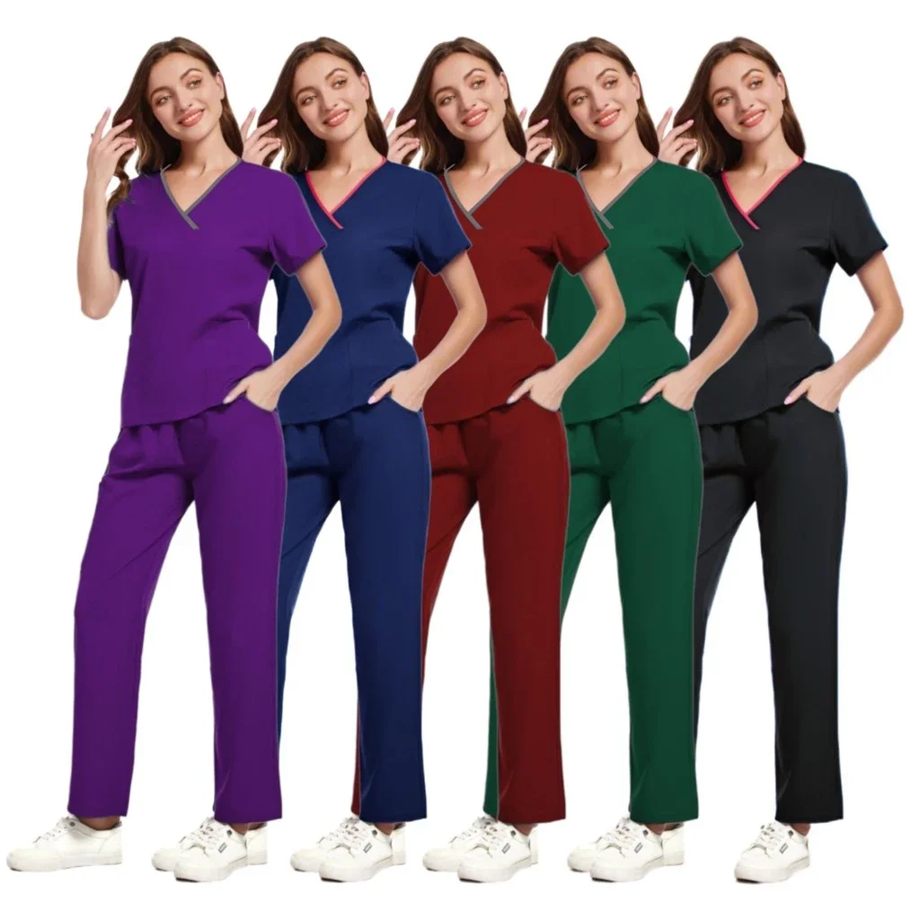 New V-neck Surgery Room Nurse Set Hospital Nursing Uniform Women Dental Work Uniform Scrub Suit High Quality Clothes Spa Uniform