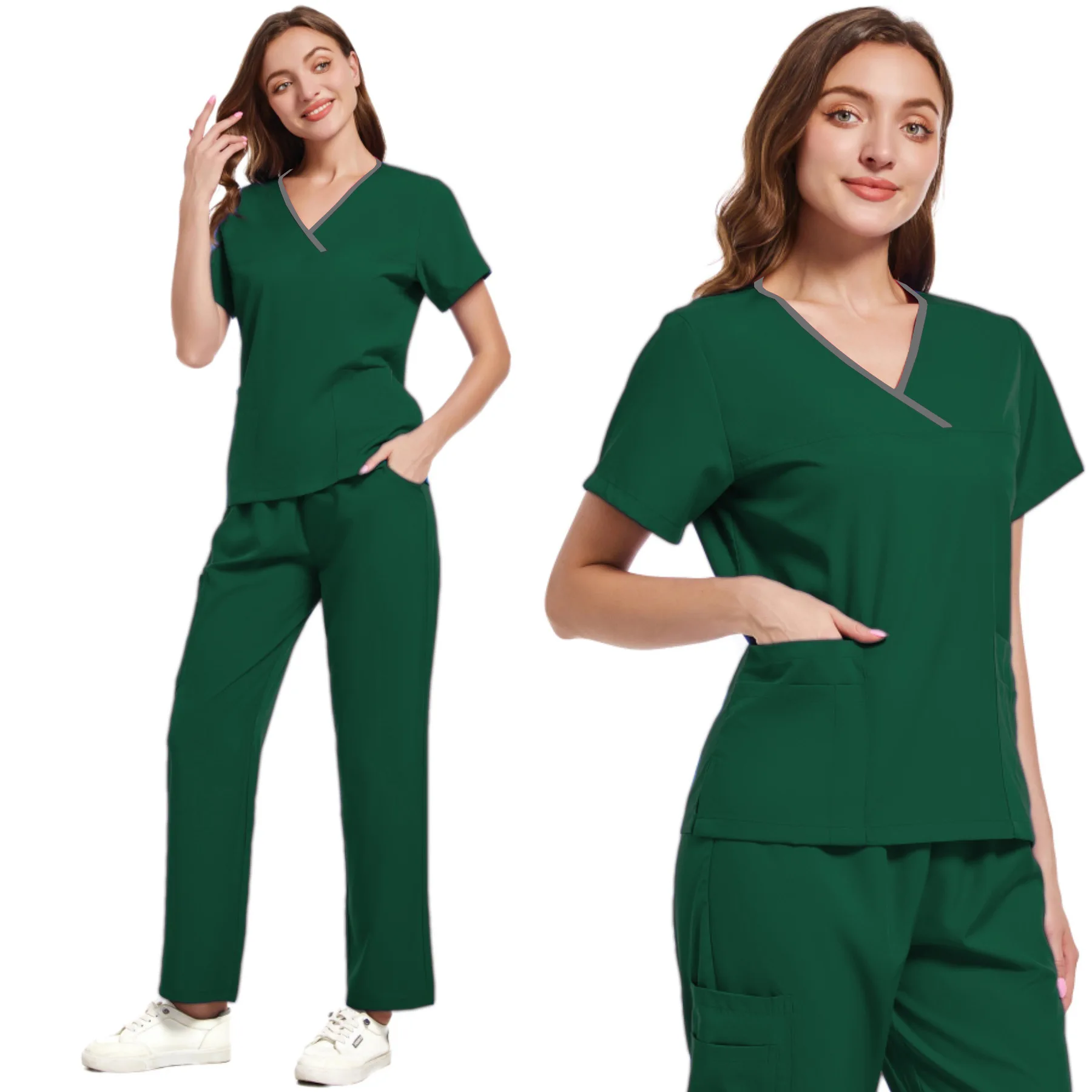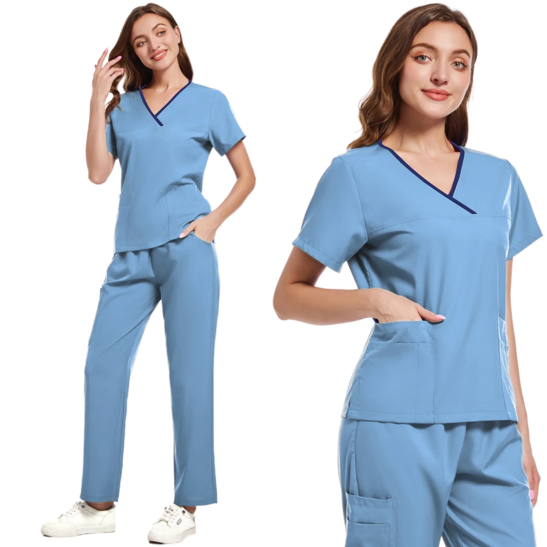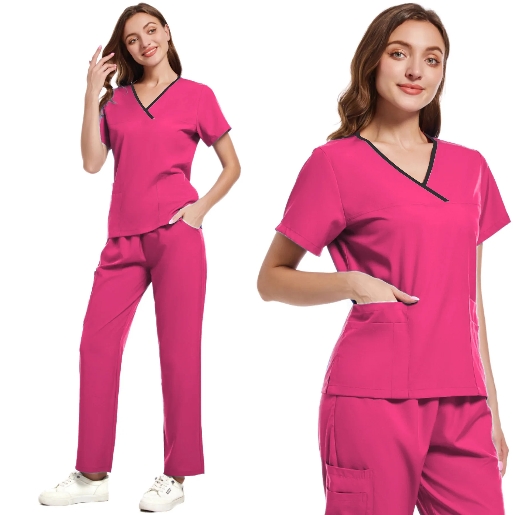 Breathable Knitted Stretch Nursing Hospital Uniforms Medical Scrubs Set for Women
