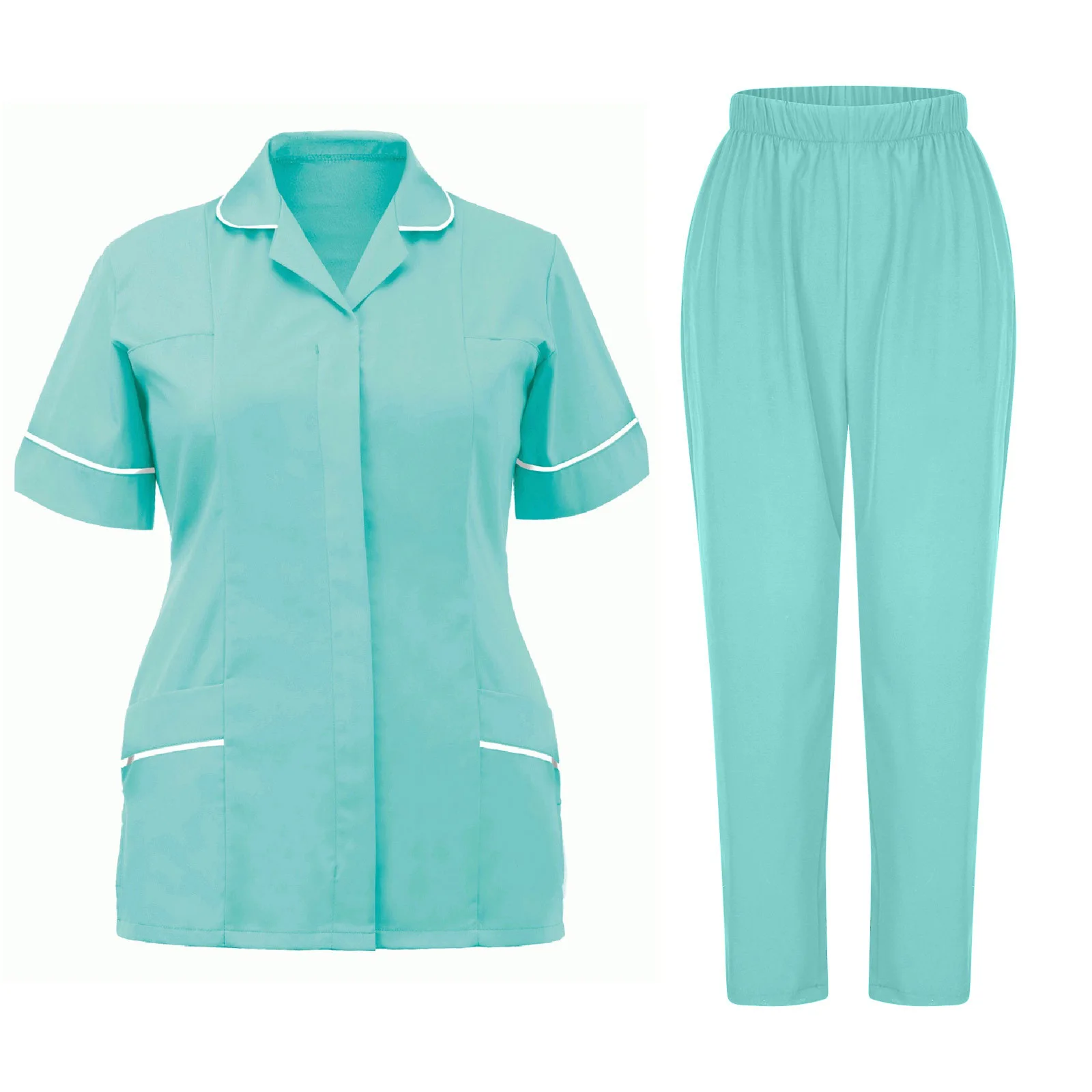 Operating Room Scrubs Women's Clothing Sleeve Turndown Collar T Shirt Tops Polyester Spandex Medical Uniforms Nursing Scrub