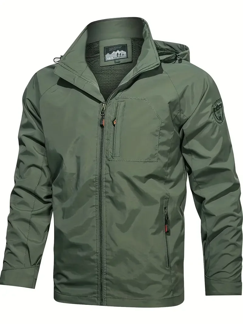 Men's Autumn Blouson Light Jacket with Hood Washed Windproof for Hiking Traveling Running Adventures-Breathable Casual Thin Coat