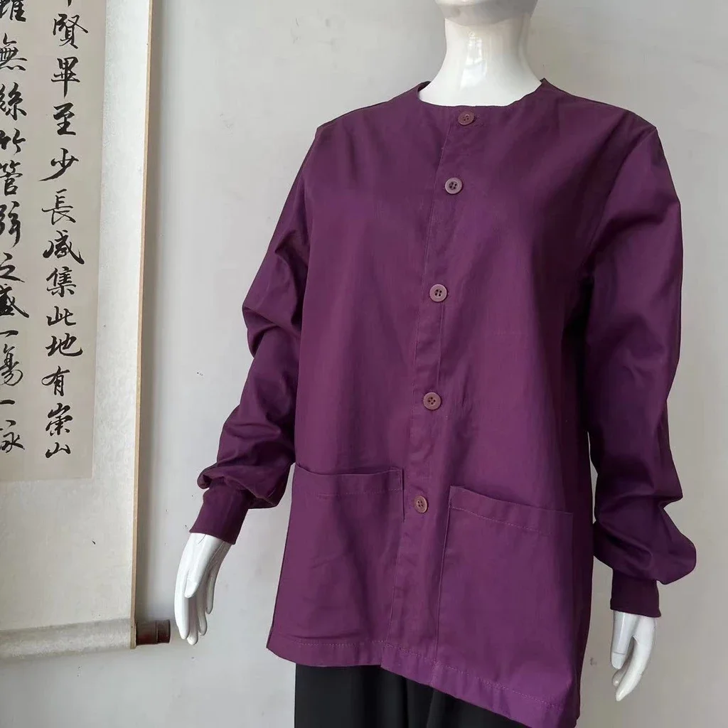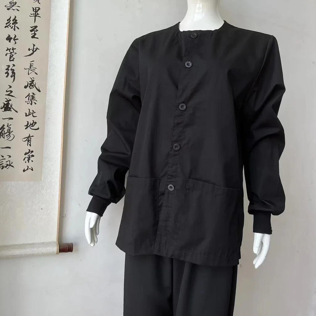 Scrub Jacket New Fashion Unisex Long Sleeve Buttons Pocket Woven Hospital Use Nurse Doctor Uniform Top