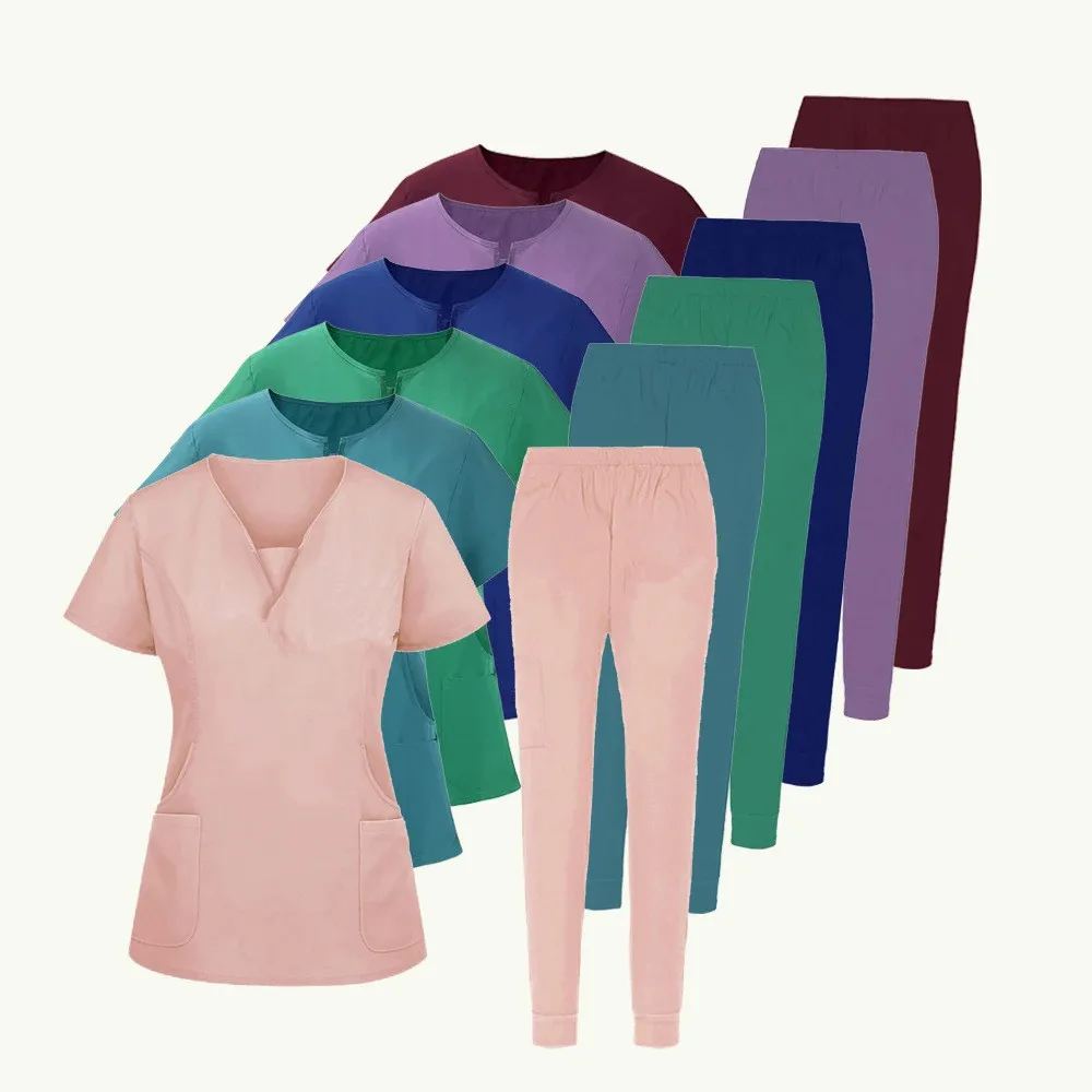 Hospital Clinical Scrubs Women's Nurse Uniform Woven Fabric Custom Logo Medical Scrub Sets