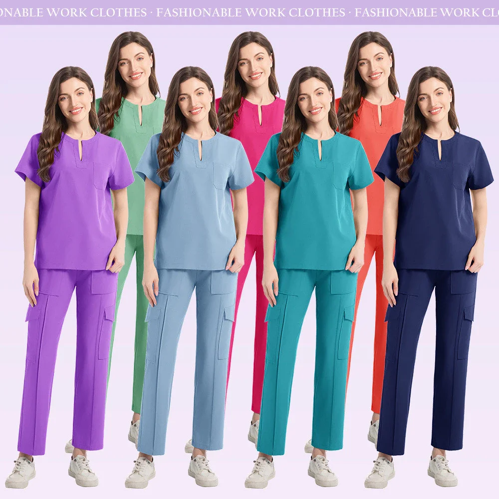 Newest V-neck Scrub Suit Medical Work Uniforms Women Hand Washing Suit Operating Room Overalls Nursing Scrubs Uniform Set