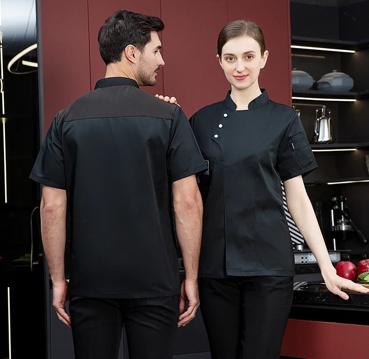 Black Absorbent Chef Uniform Short Sleeve Shirt Waterproof Kitchen Work Wear Coat for Men Breathable Mesh Chef Uniforms