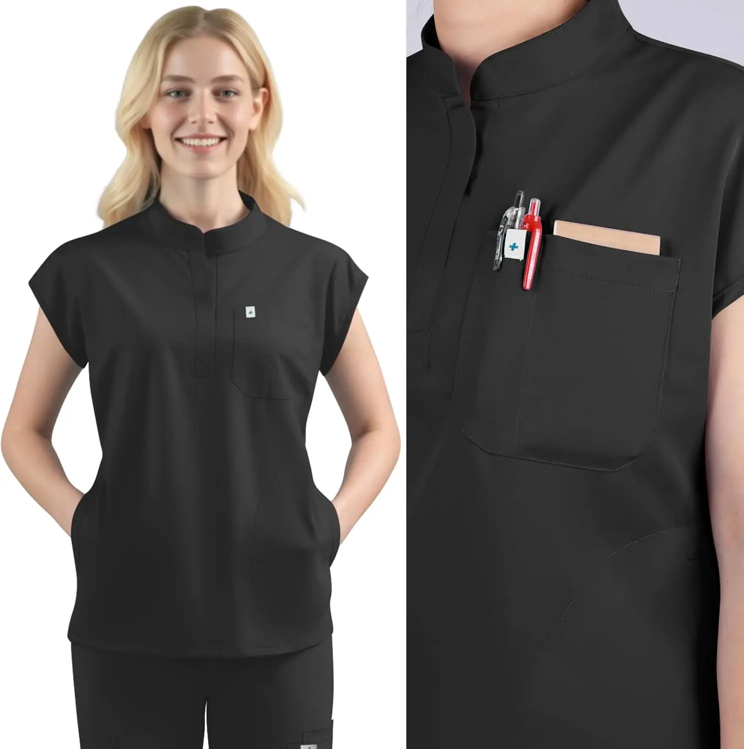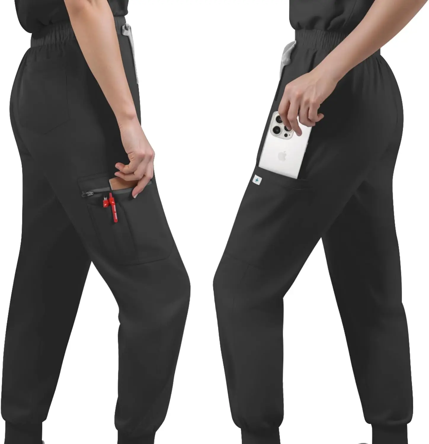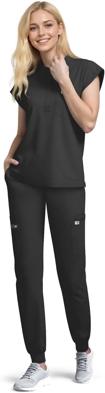 Eipnare Women's Medical Uniform Scrubs Set Anti-Wrinkle Anti-Wrinkle Scrub Top Jogger Pant 11 Pockets 4 Way Stretch Hospitals