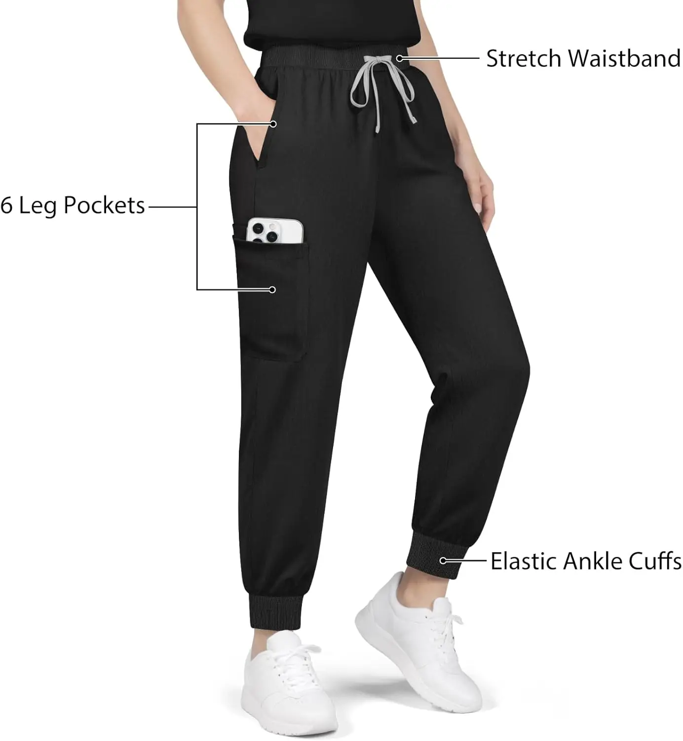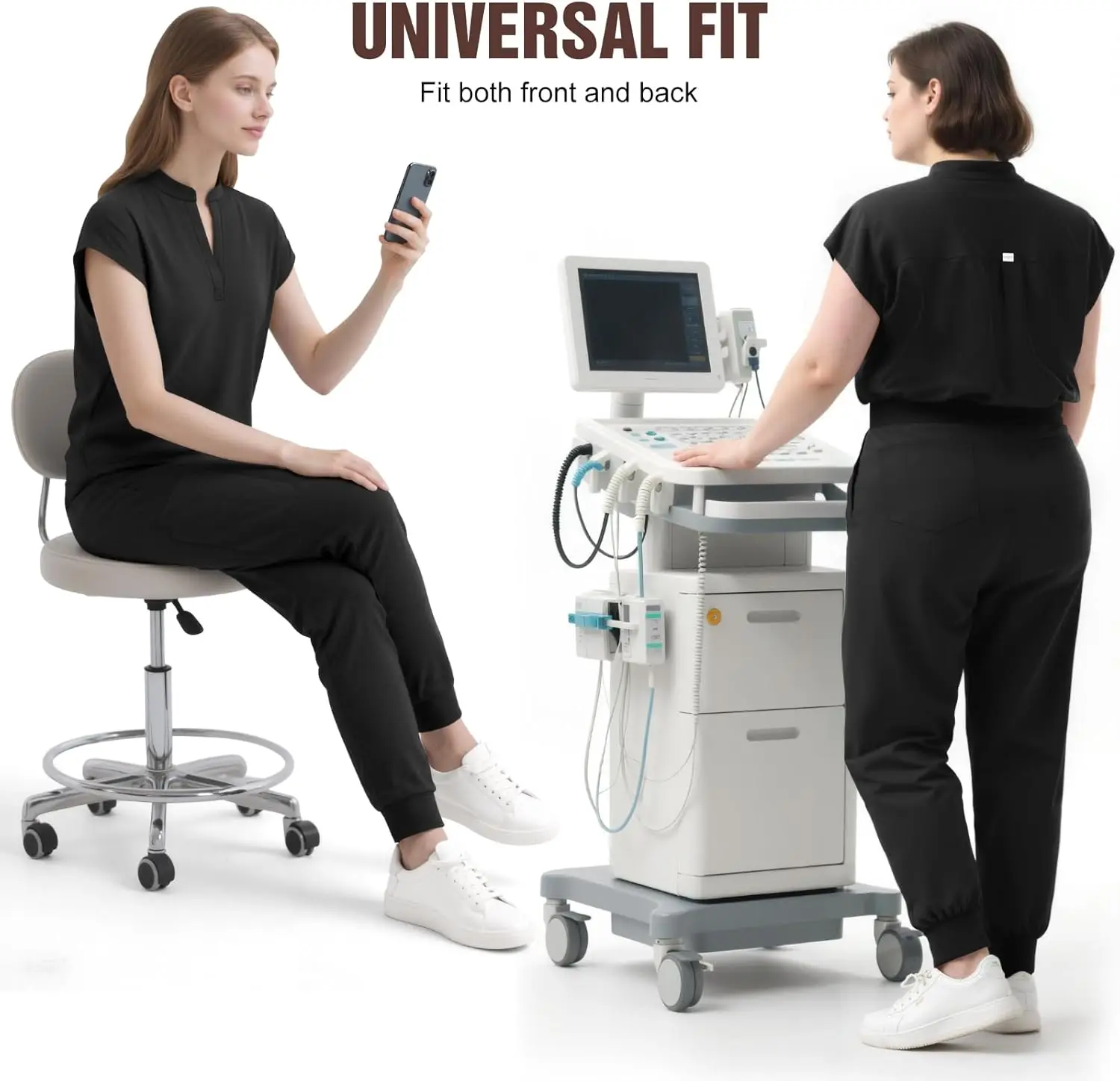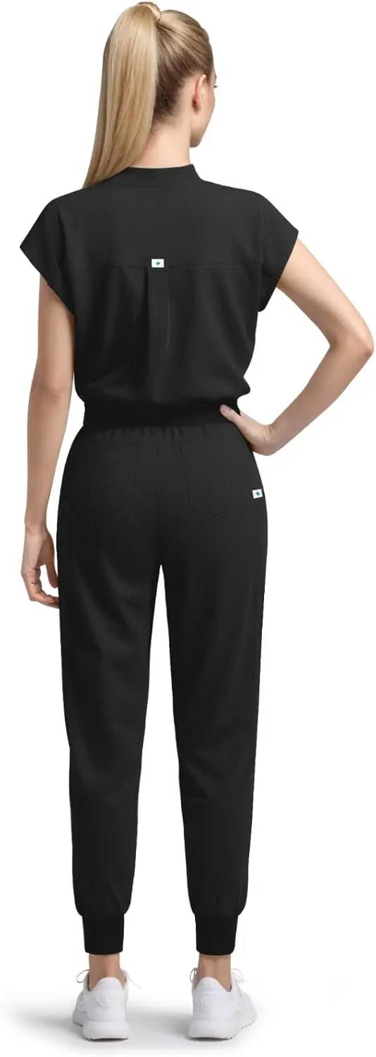 Dvoliaw Women's Nurse Uniform Set Mandarin Collar Scrub Top Jogger Pant 8 Pockets 4 Way Stretch Yoga Waistband for Hospitals